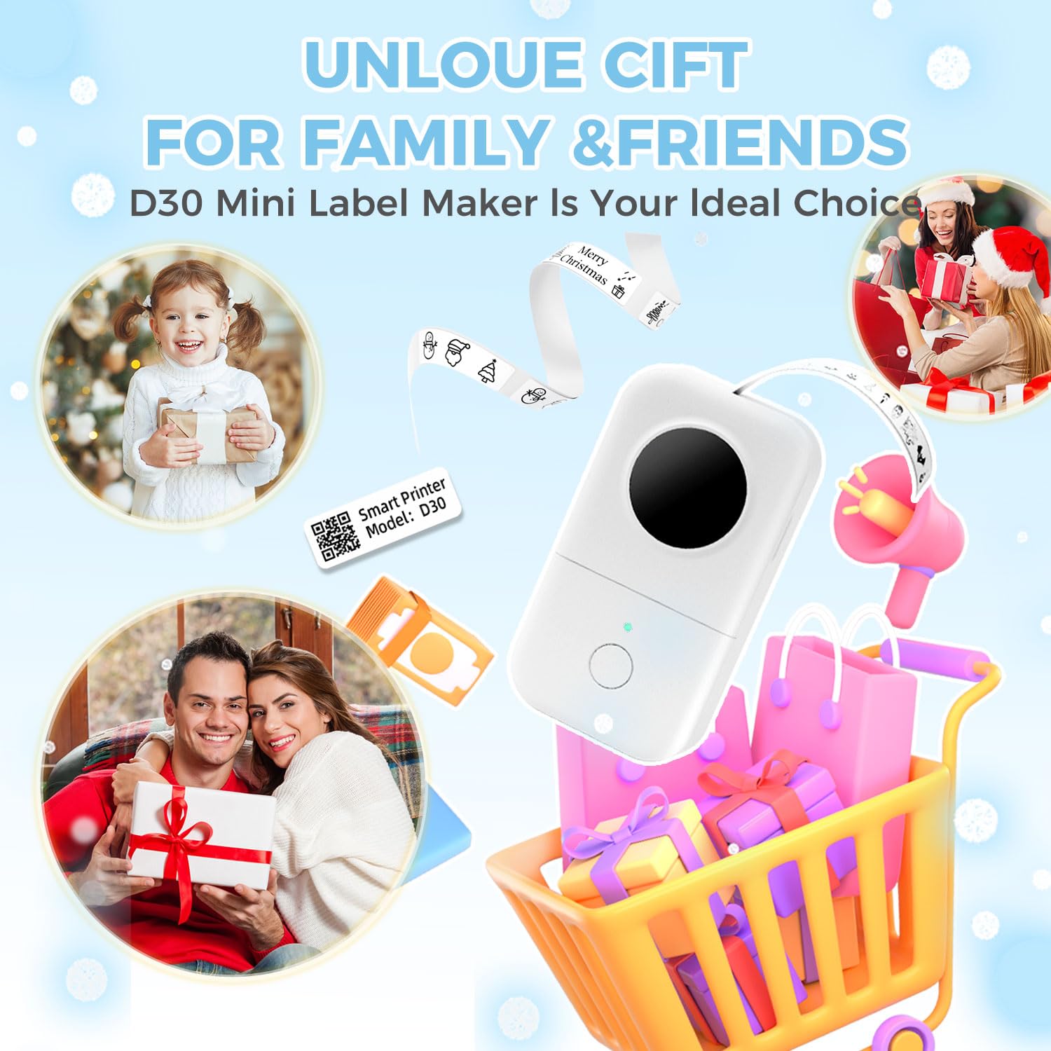 Phomemo D30 Drukarka etykiet drukarka do samoprzylepnych etykiet Bluetooth, minidrukarka etykiet z 3 rolkami papieru etykietowego, pude?ko upominkowe, odpowiednia do domu i biura, bia?a