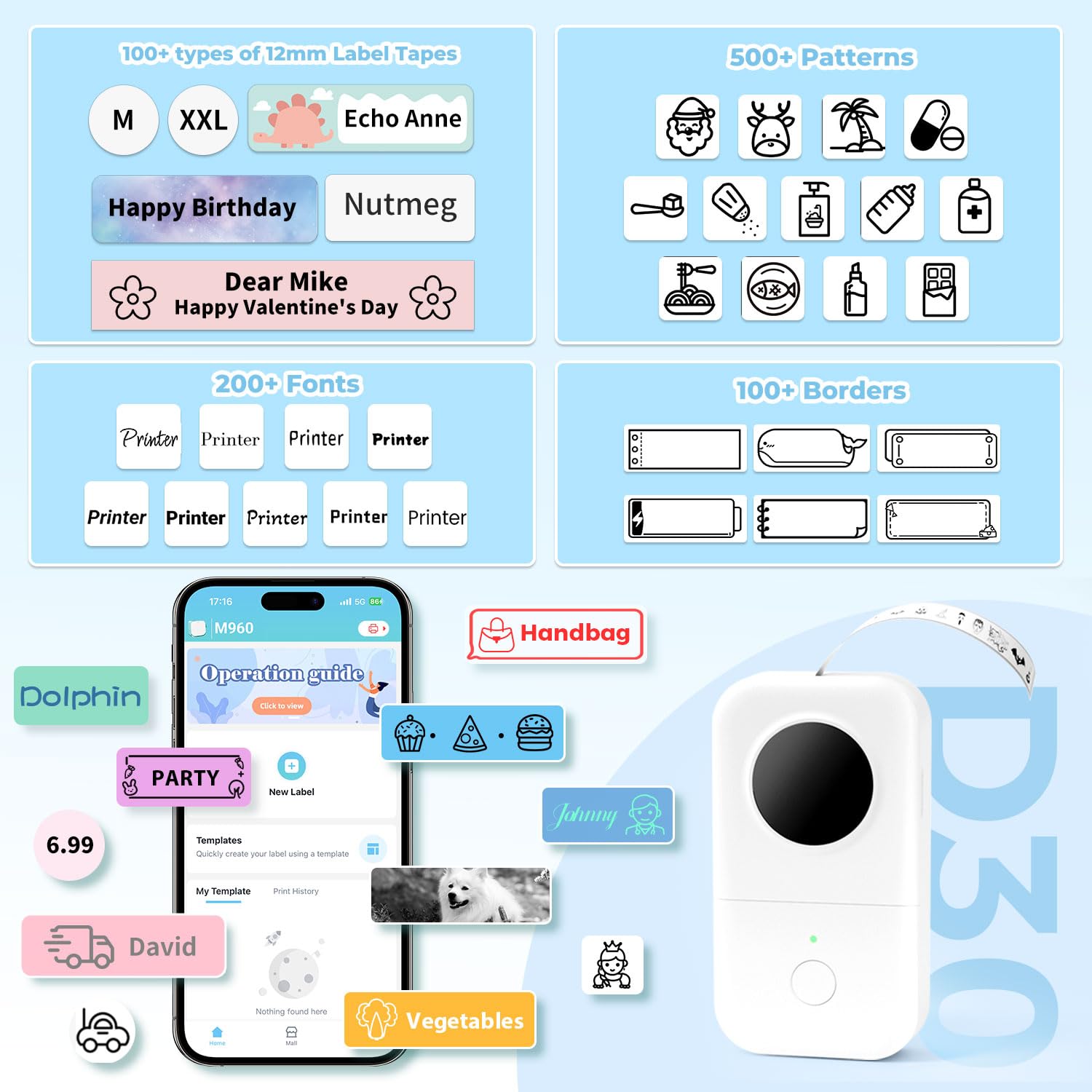 Phomemo D30 Drukarka etykiet drukarka do samoprzylepnych etykiet Bluetooth, minidrukarka etykiet z 3 rolkami papieru etykietowego, pudełko upominkowe, odpowiednia do domu i biura, biała