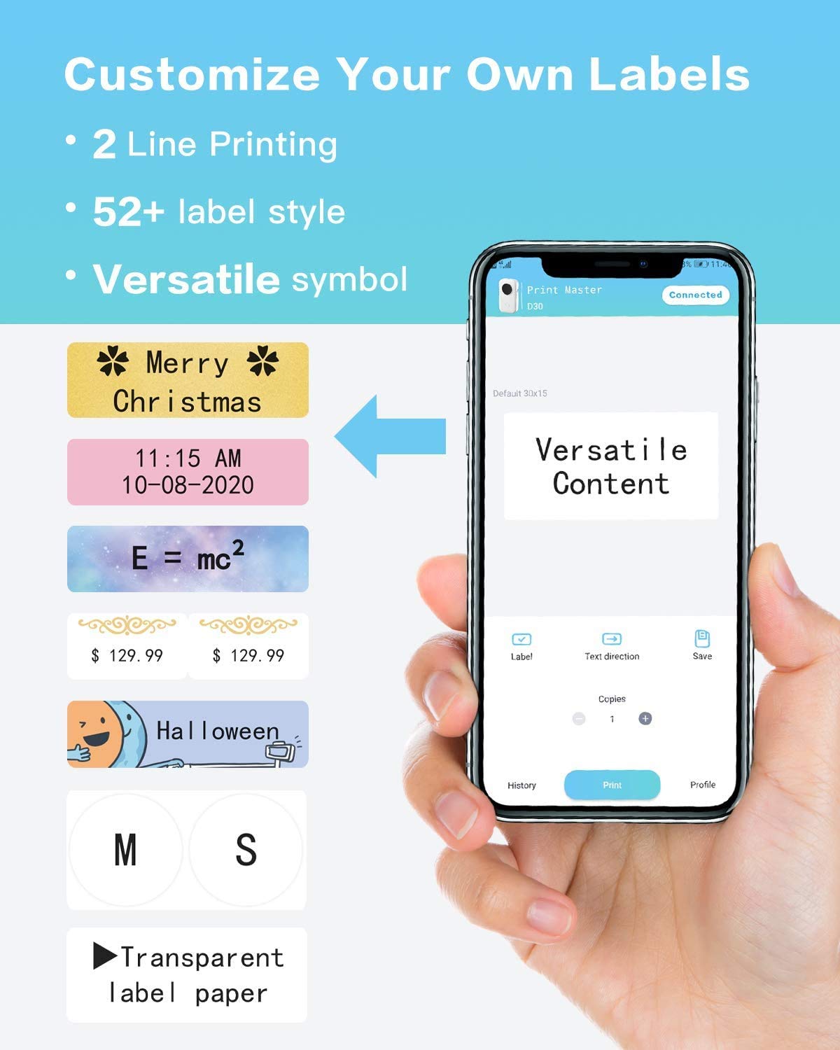 Phomemo D30 Etiquetas, 3 rollos Etiqueta Phomemo D30, 12 mm × 40mm, compatible con etiquetas Phomemo D30, adecuado para el hogar, escuela, 160 etiquetas/rollo, 3 rollos. gradiente