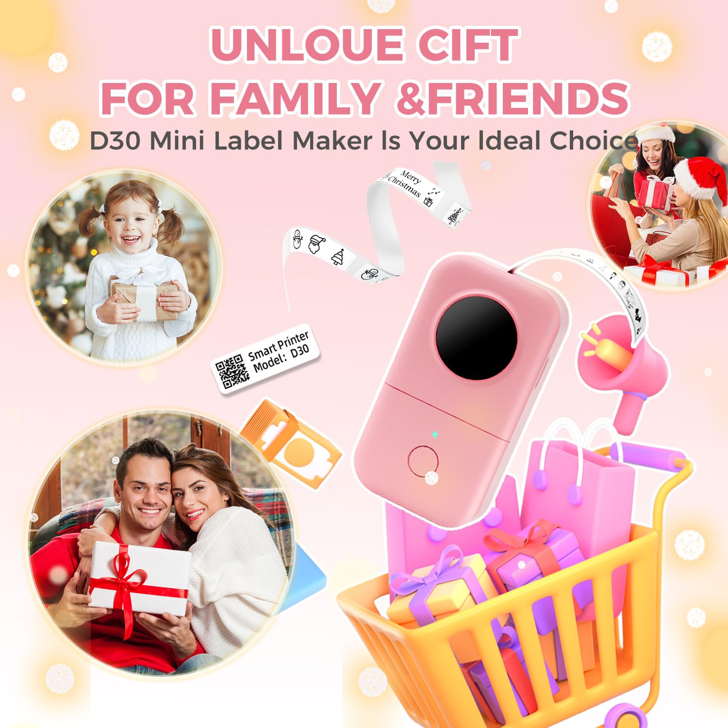 - D30 Smart Label Printer Gift Box Set - 1 D30 Sticker Label Maker+ 5 rolls of adhesive label paper (12mmX40mm). This combo set can provide more choice for label paper style. It is very suitable as a gift to show to children, family and friends on Halloween, Thanksgiving, Christmas and holidays