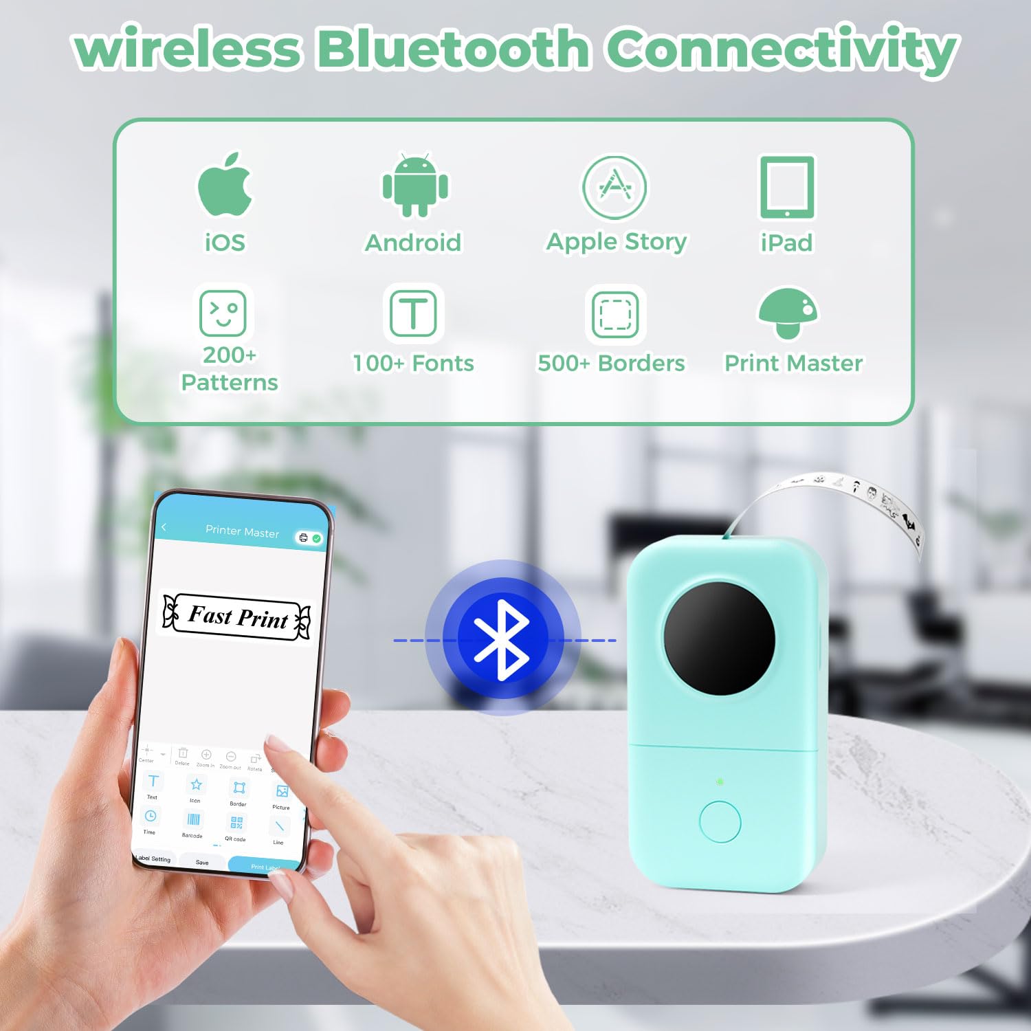 - Wireless and portable - Mini wireless label printer with Phomemo Bluetooth connectivity for fast and convenient printing, easily create labels from smart mobile devices. Long-lasting rechargeable battery for long operating time, fits in any pocket and can be taken anywhere.It is also the best gift for kids, family and friends