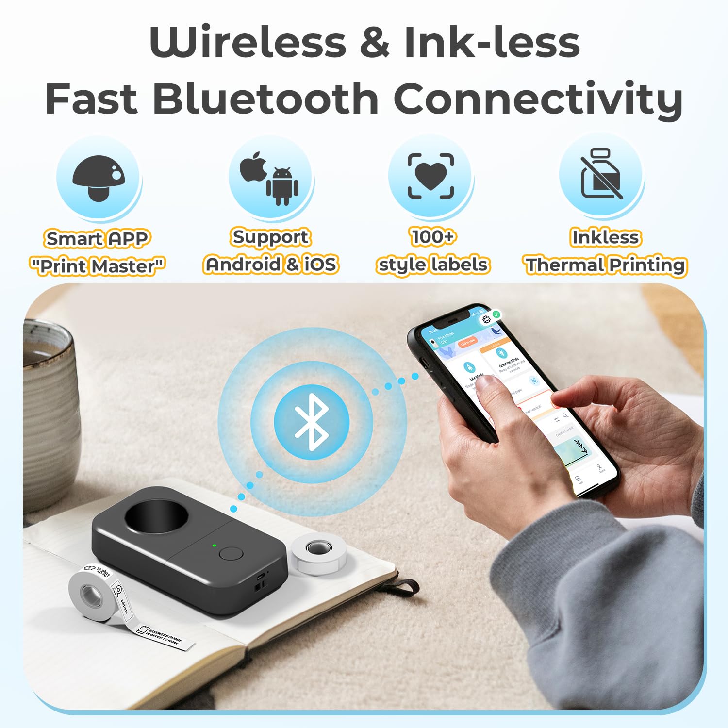 - Wireless and Portable : Mini size wireless Bluetooth-connected Phomemo label printer for Convenient & Fast printing, easy to create labels from smart mobile devices. Built-in durable and recharge battery for long working time, slide into your pocket, easy to carry anywhere
