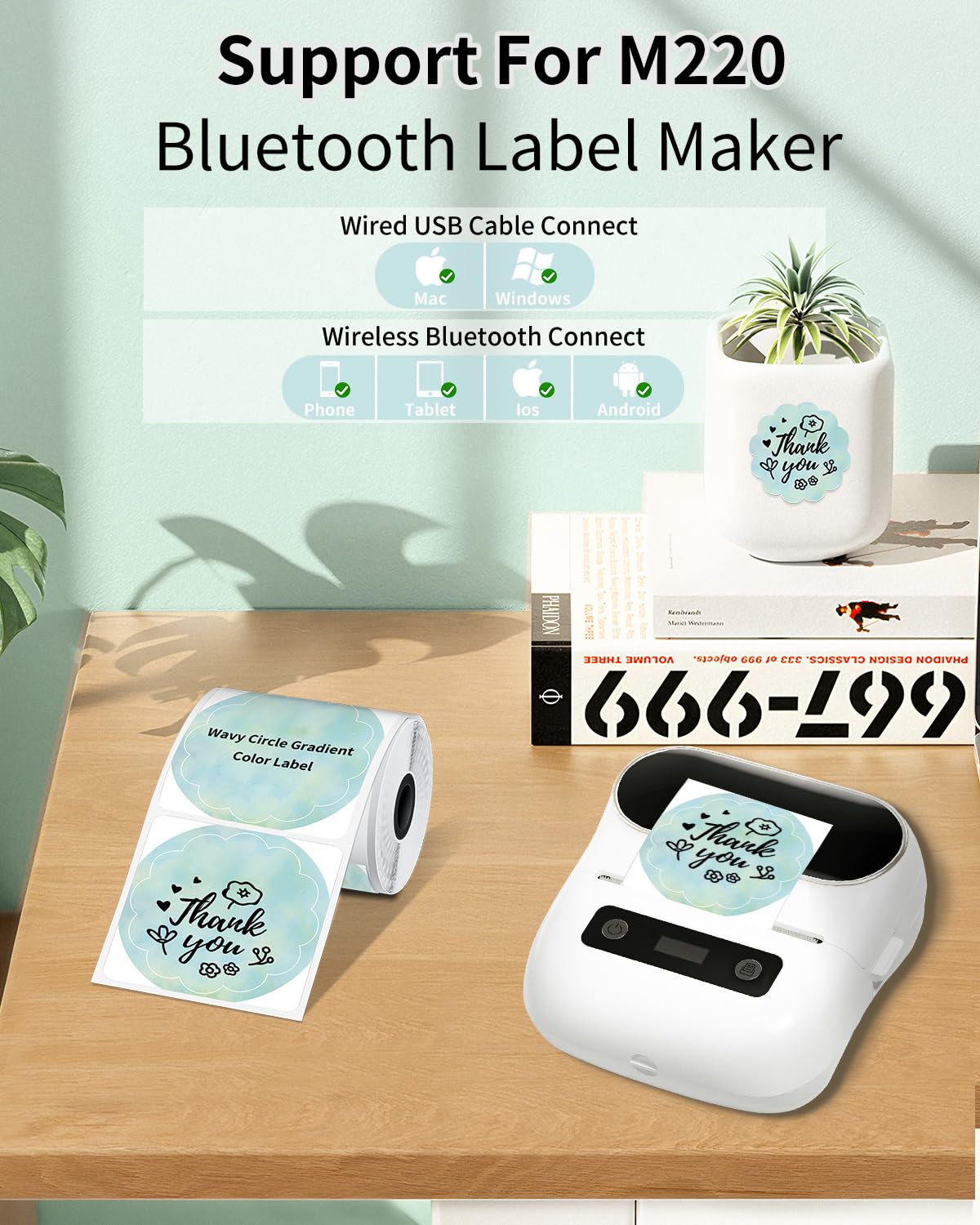 Phomemo Etiquettes Thermiques Ronde pour Imprimante Etiquette M110/M220/M221/M120/M200, 50x50mm Etiquettes Thermiques Circulaires en Couleur pour Code-barres,Logo, Cadeau, Bénédiction,Vert Ciel Étoilé