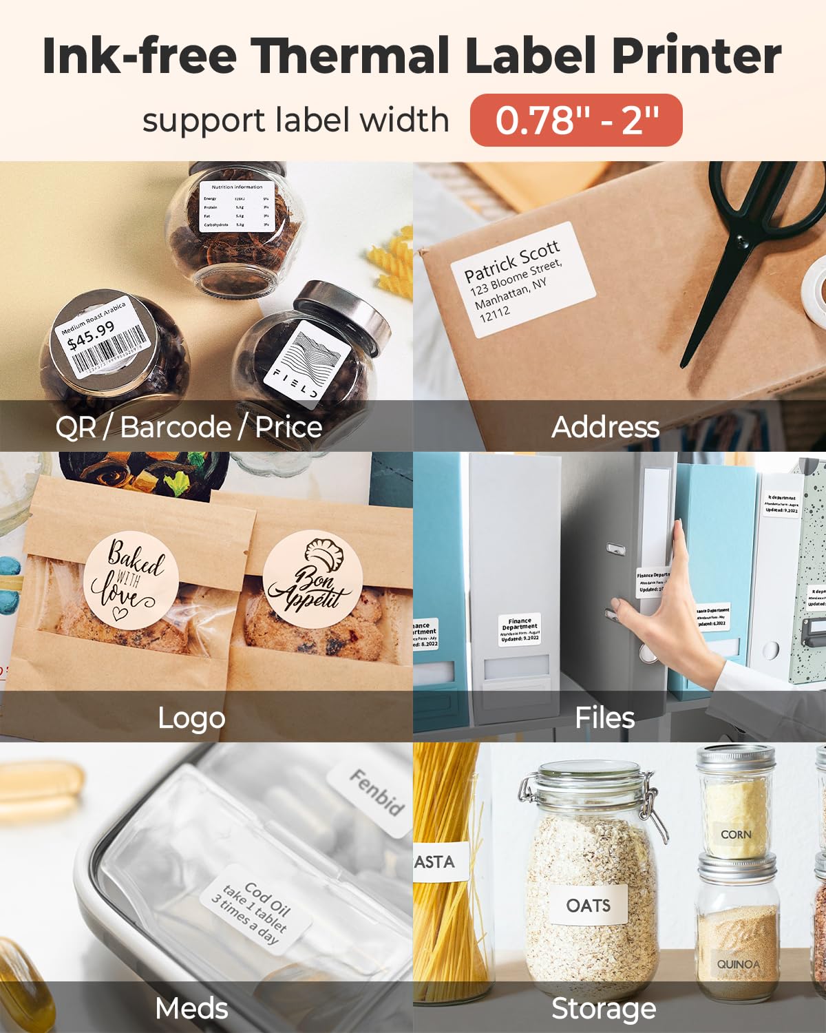 - IMPRESORA DE ETIQUETAS MULTIFUNCIONAL PARA TODOS : Ancho de impresión de 20 a 50 mm (NO para etiquetas de envío de 4x6). Se ofrecen varias plantillas y tamaños opcionales de etiquetas para satisfacer las necesidades de diferentes hogares e industrias. ¡Etiquetas de precios, etiquetas de dirección, etiquetas de nombre, etiquetas de categoría, pegatinas de embalaje y mucho más