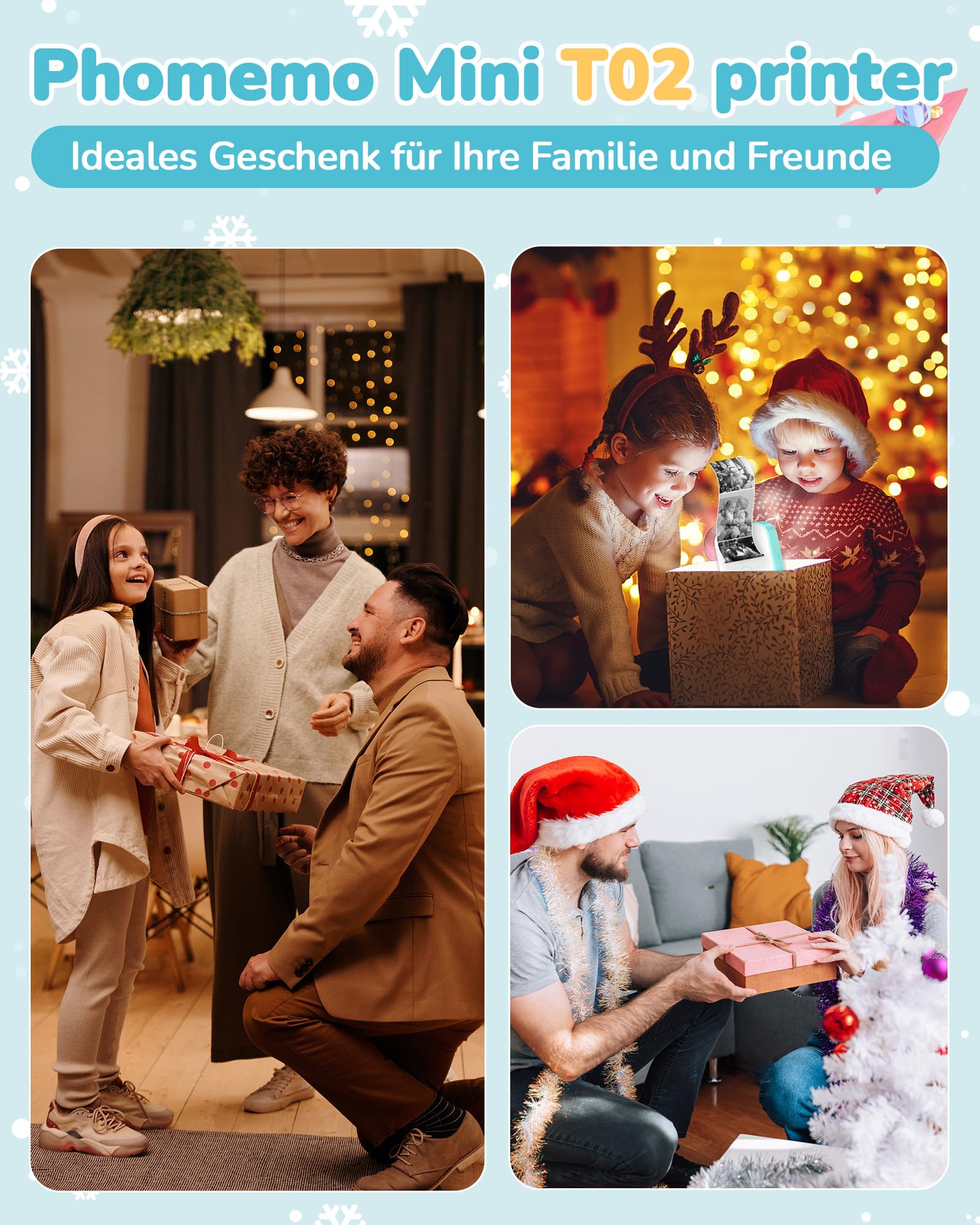 Phomemo Mini Printer, T02 Photo Printer for Smartphone, Inkless Sticker Printer, Mini Pocket Label Printer, Thermal Printer with 3 Rolls Paper, Decal Printer for Mobile Phone, Study Notes,
