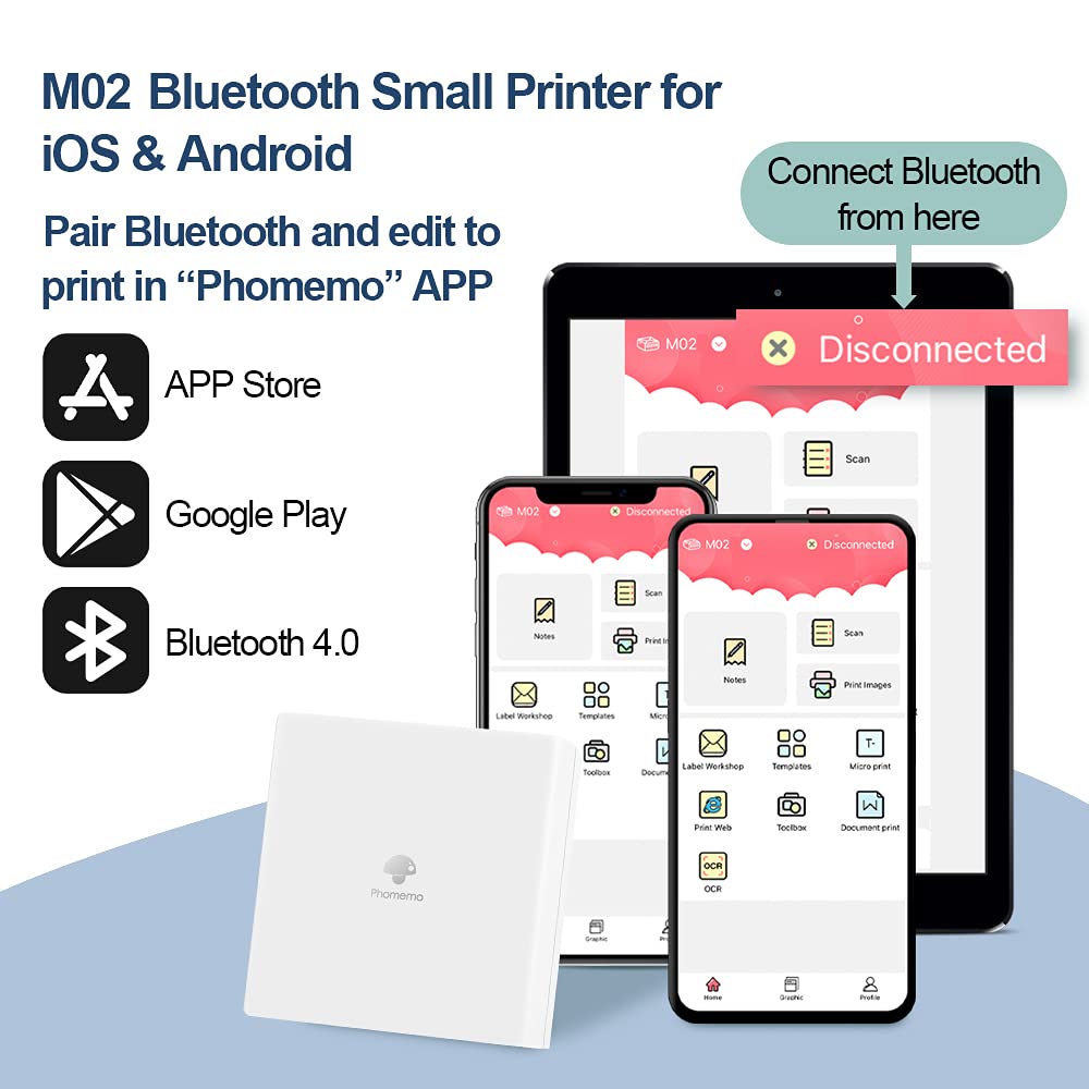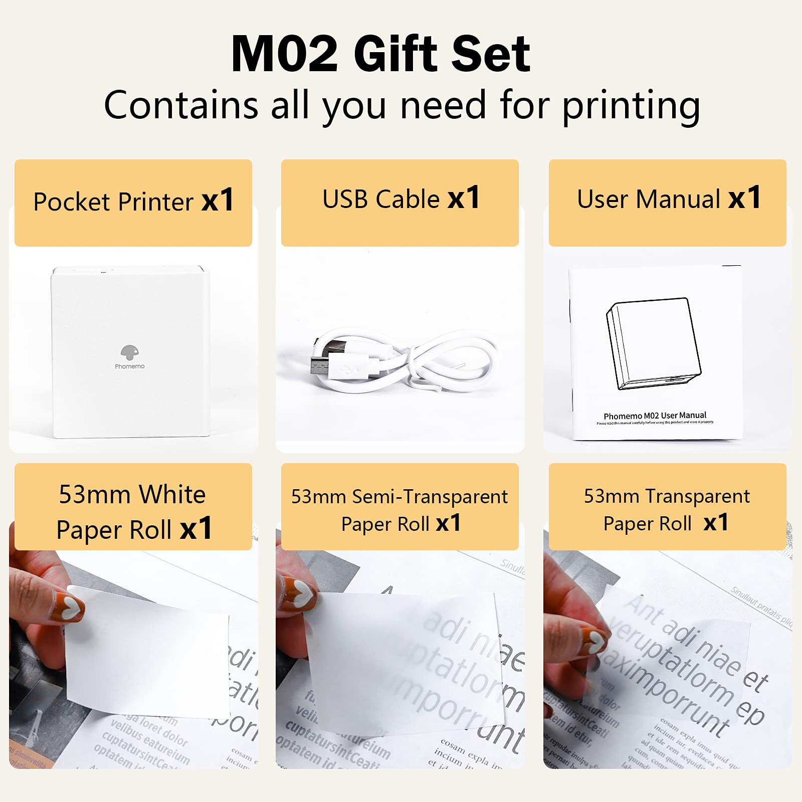 Phomemo Mini stampante portatile M02 ¨C Stampante termica Bluetooth tascabile istantanea per telefono, compatibile con iOS 13.0 e Android 8.0 e superiori, per diario, studio, Natale, regalo per