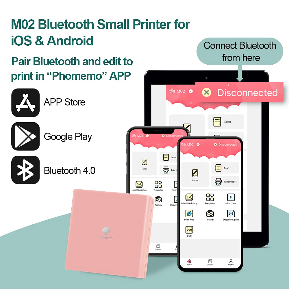 Phomemo Mini stampante termica M02 – Stampante tascabile wireless compatta per adesivi, compatibile con iOS 13.0 e Android 8.0 e versioni successive, per diari per bambini, pianificazione giornaliera