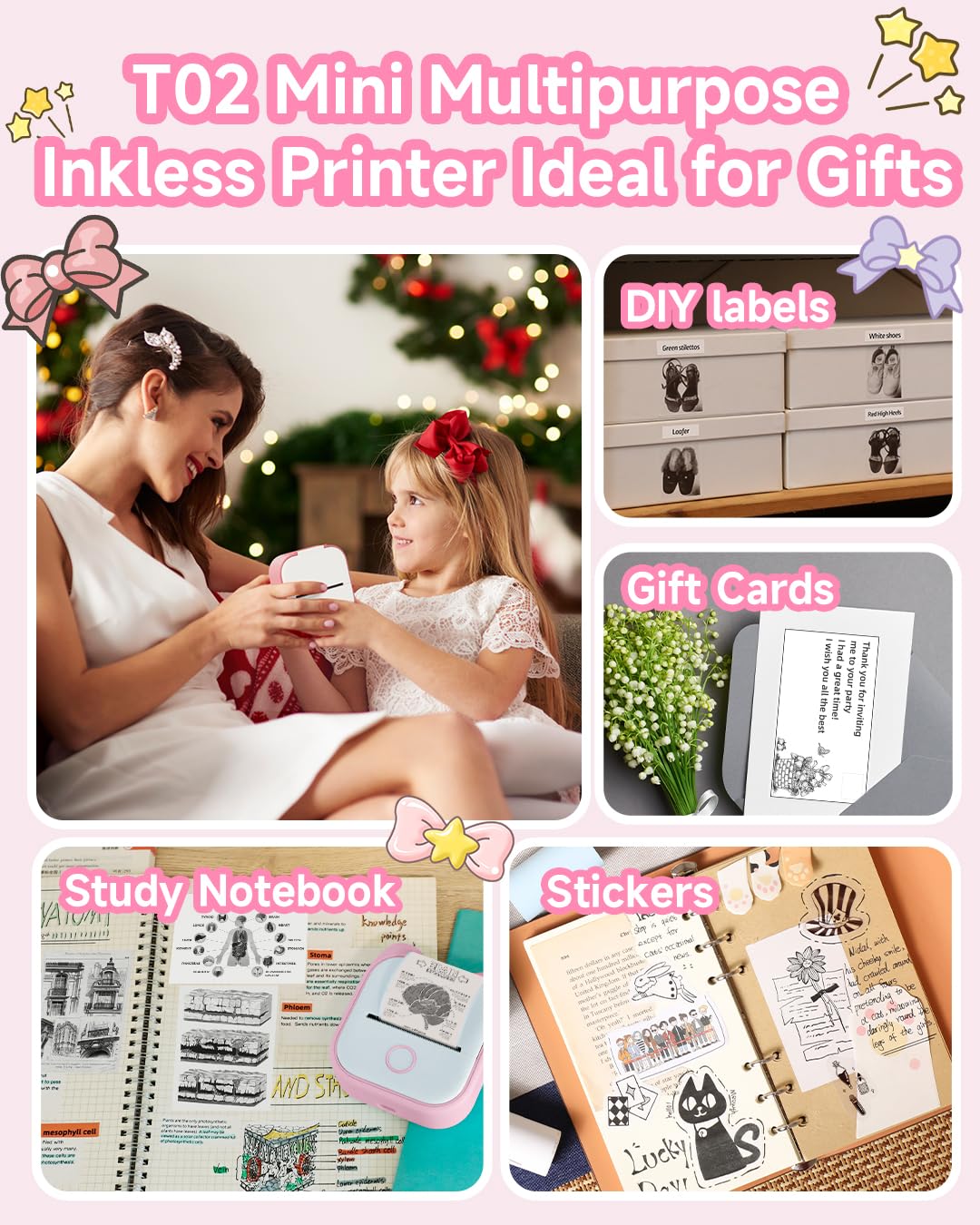 - Practical and Unique Gift- Phomemo T02 mini printer is not only functional but also makes an exceptional gift. Ideal for photography enthusiasts and DIY lovers among your friends and family. Let them experience the joy and convenience of having a pocket printer at their fingertips. Birthdays, Halloween, Thanksgiving, Christmas Gift.