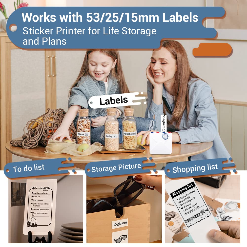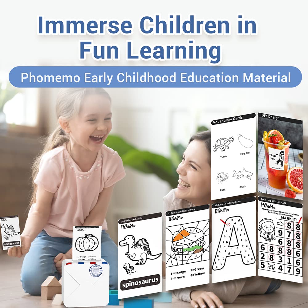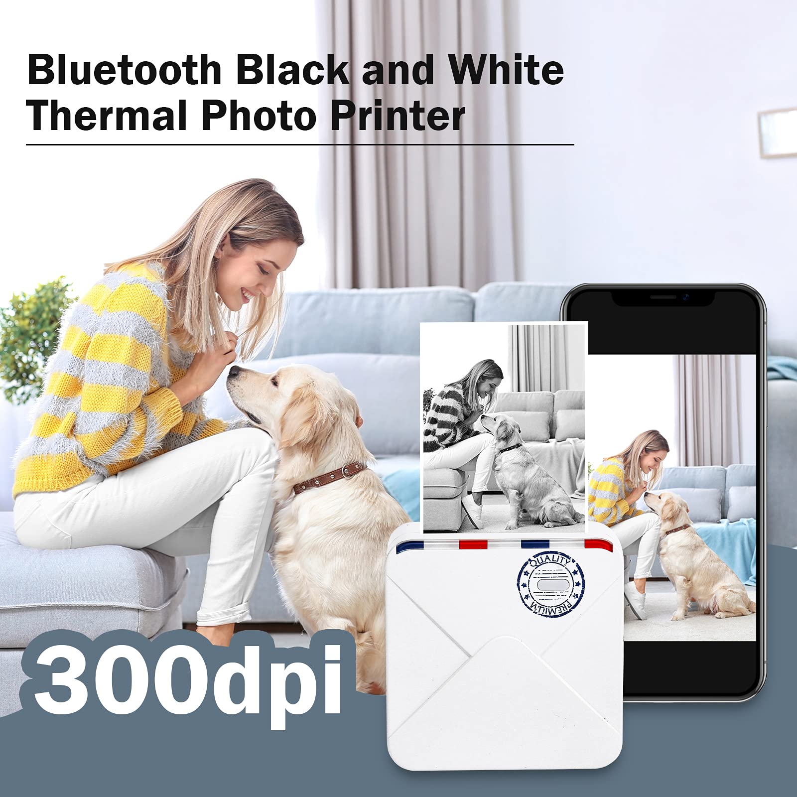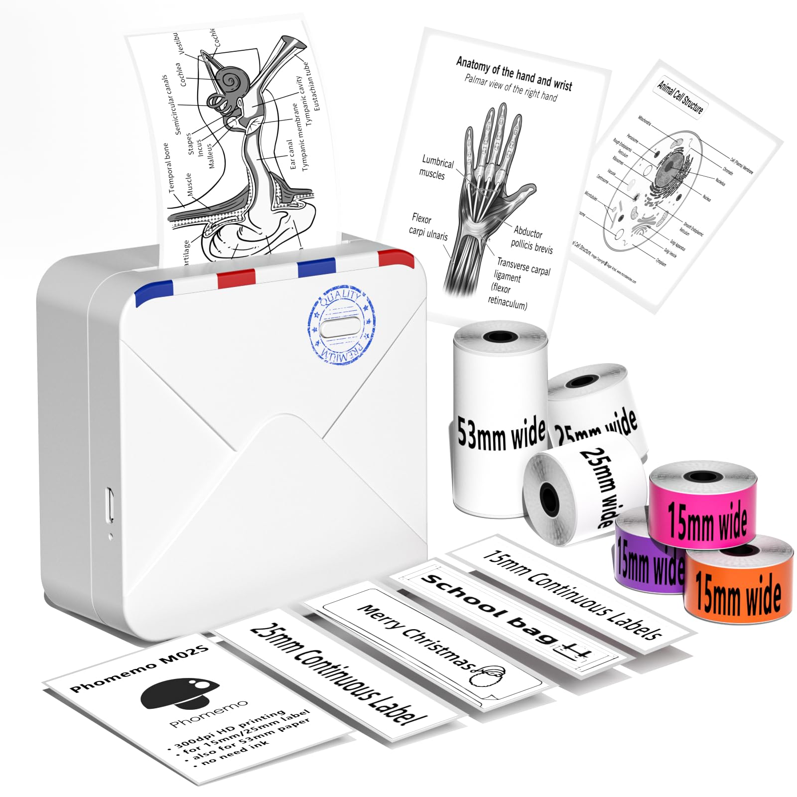 Phomemo Mini Thermal Printer M02S Wireless Bluetooth Portable 300dpi HD Printing with Rechargeable Battery, Suitable for Journal Organization Photos, Compatible with iOS and Android, White