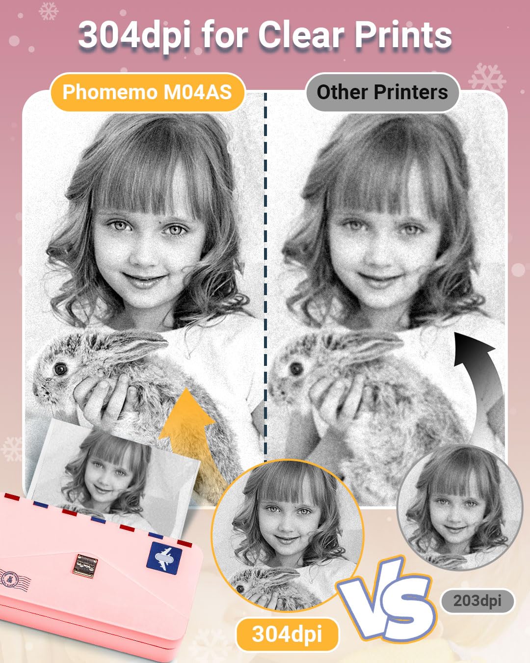 - Yüksek baskı kalitesi - 304 dpi yüksek çözünürlüğe sahip Phomemo M04AS Mini taşınabilir yazıcı, net ve dokulu siyah beyaz vintage görüntüler basabilir. M04AS yazıcı termal baskı teknolojisini kullanır. Mürekkep veya toner içermez, çevre dostudur.