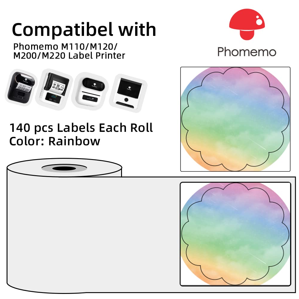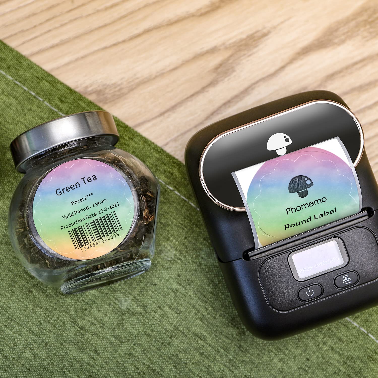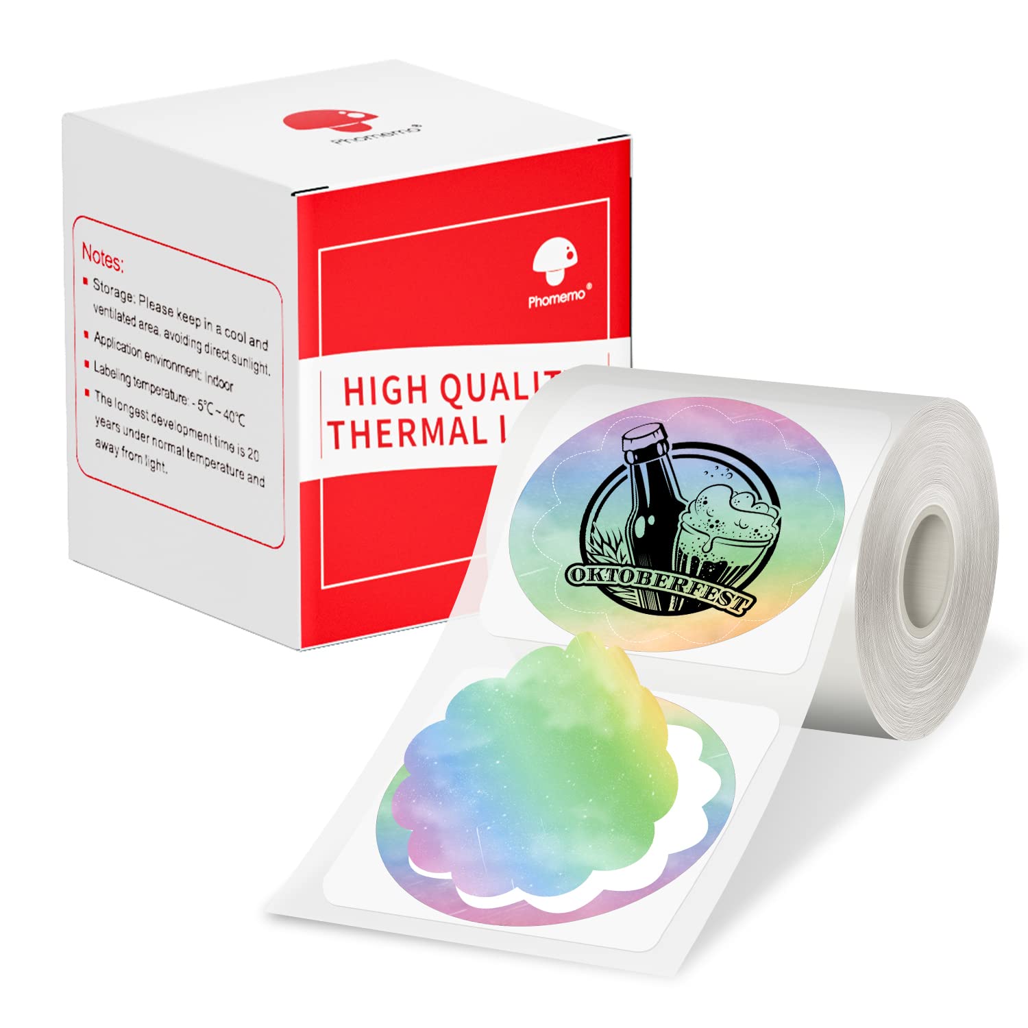 Phomemo Naklejka z logo, 50 x 50 mm, okr?g?y, t?czowy, samoprzylepny, bezpo?redni papier do etykiet Phomemo M110, u?ywany do drukowania logo, oznaczania artyku?¨®w gospodarstwa domowego itp.