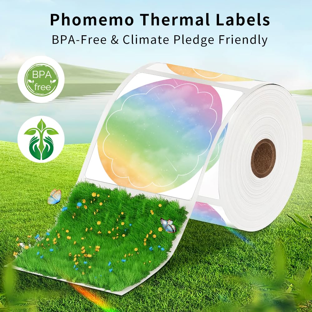 Phomemo Okr?g?e etykiety do drukarek etykiet M220/M221/M110/M120/M200, 3 rolki 50 mm x 50 mm (1,96'' x 1,96'') etykiety gradientowe na kod kreskowy/logo/etykiety prezentowe/ma?e przedsi?biorstwo,