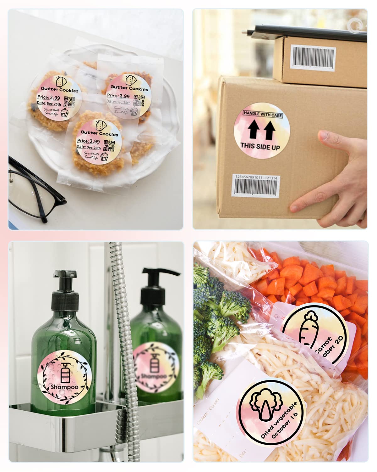 Phomemo Okr?g?e etykiety termiczne 5 cm, samoprzylepne okr?g?e etykiety do drukarki, okr?g?a etykieta do drukarki termicznej na kart? z podzi?kowaniami, projekt logo, nazwa/cena, adres, kod QR, 750