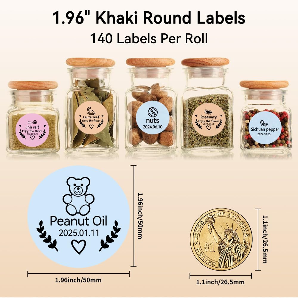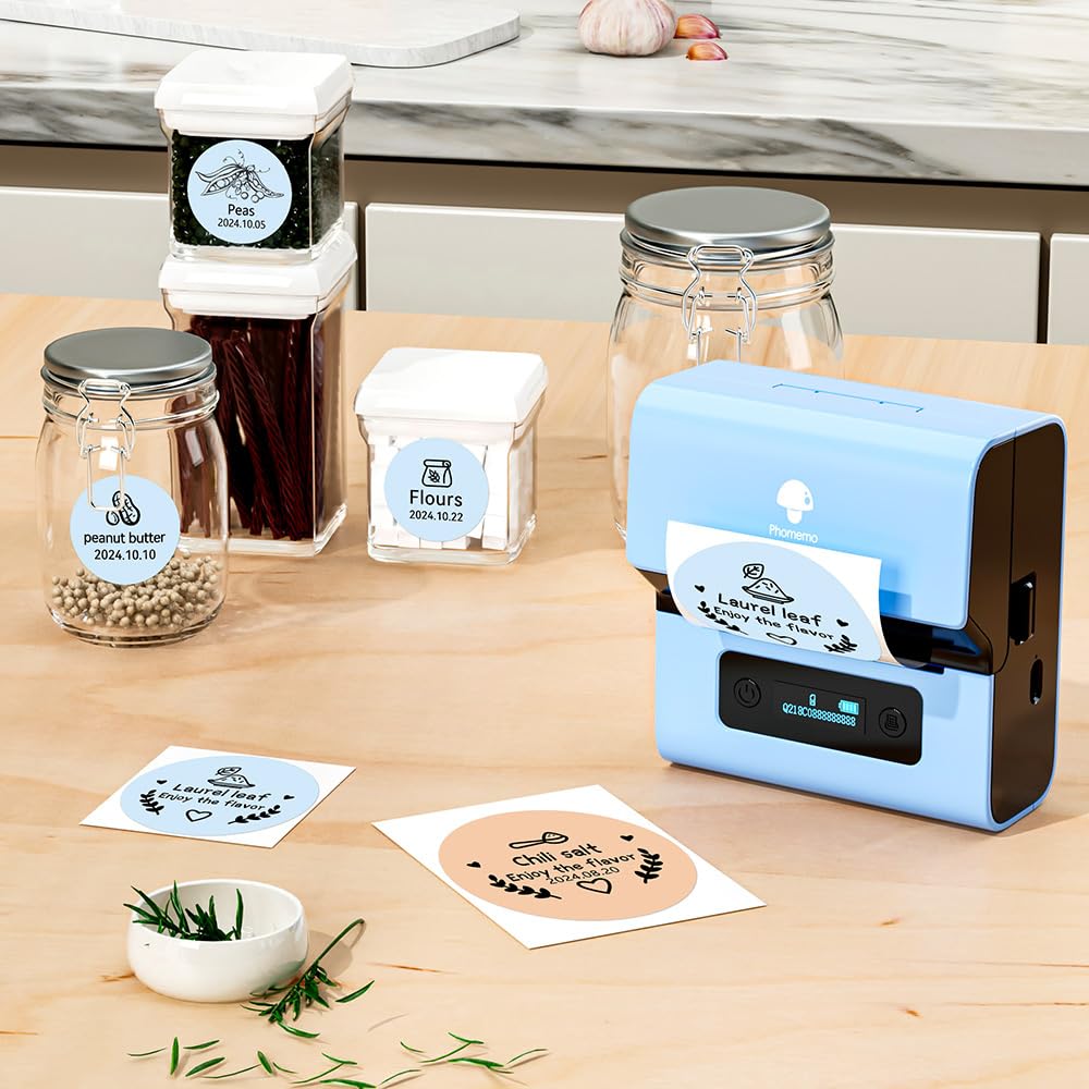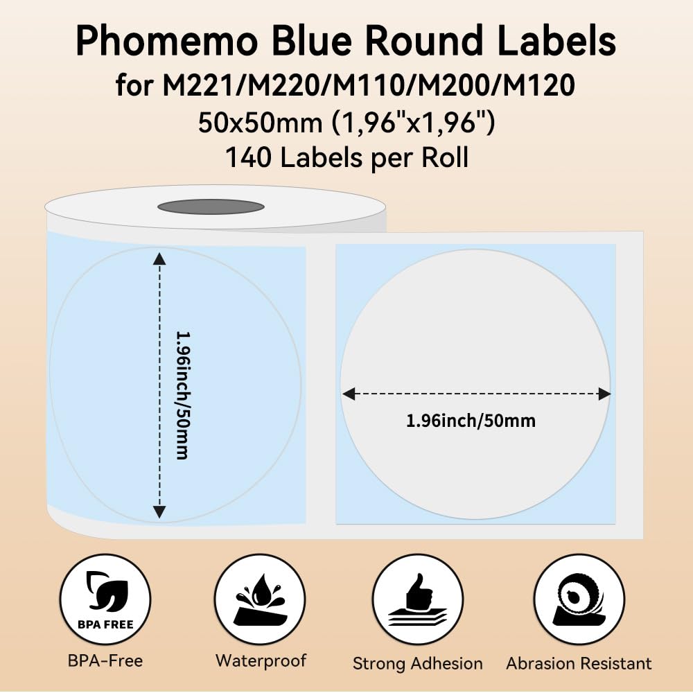 Phomemo Okrągłe, kolorowe etykiety samoprzylepne 50 x 50 mm, papier termiczny do drukarek etykiet Phomemo M110/M221/M200/M120/M220, 140 etykiet w rolce (niebieskie)