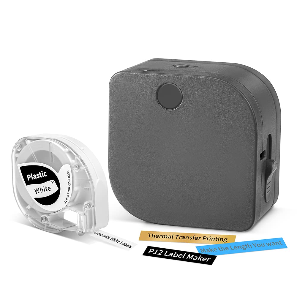 Phomemo P12 Bluetooth labelprinter, mini labelmaker etiketteringsapparaat, zelfklevend, thermische etiketteerapparaat, compatibel met iOS en Android, labelprinter voor thuis en op kantoor, mat zwart