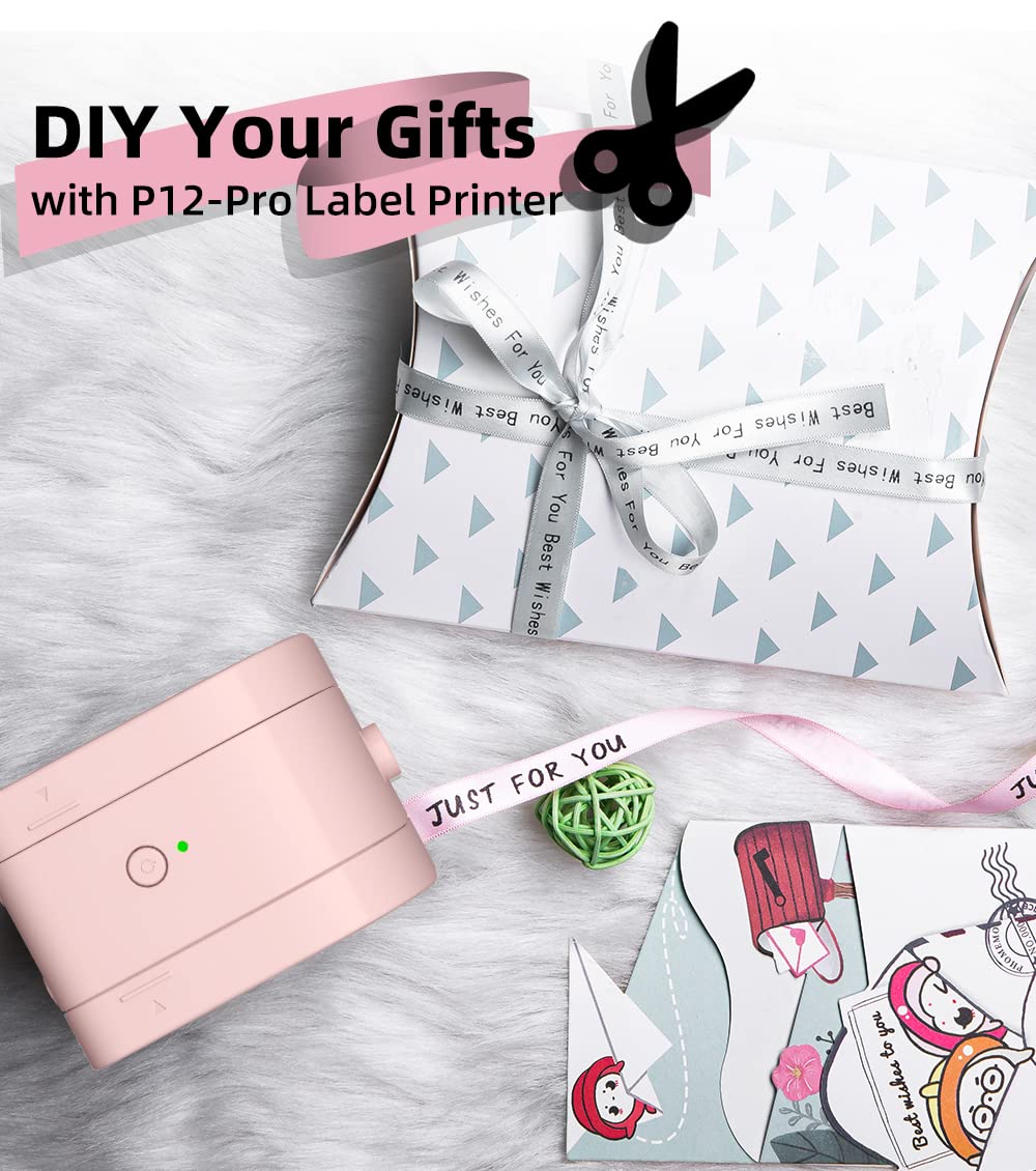 - Hunderte von P12-Etikettenbändern: Dieses beschriftungsgerät bluetooth druckt auf dem P12 etikettenband, das in einer breiten Palette von Farben und Materialien erhältlich ist. Es gibt nicht nur selbstklebendes Etikettenpapier und Kunststoffetiketten in verschiedenen Farben, sondern auch satinbänder zur Christmas dekoration und Stoffbügeletiketten für Kleidung (einschließlich der beliebtesten transparent und schwarze etiketten)