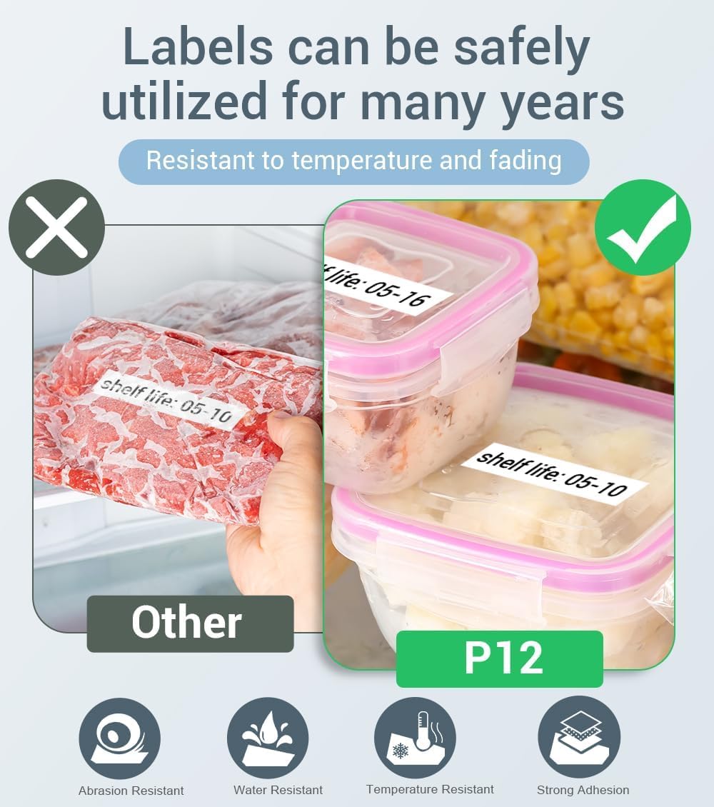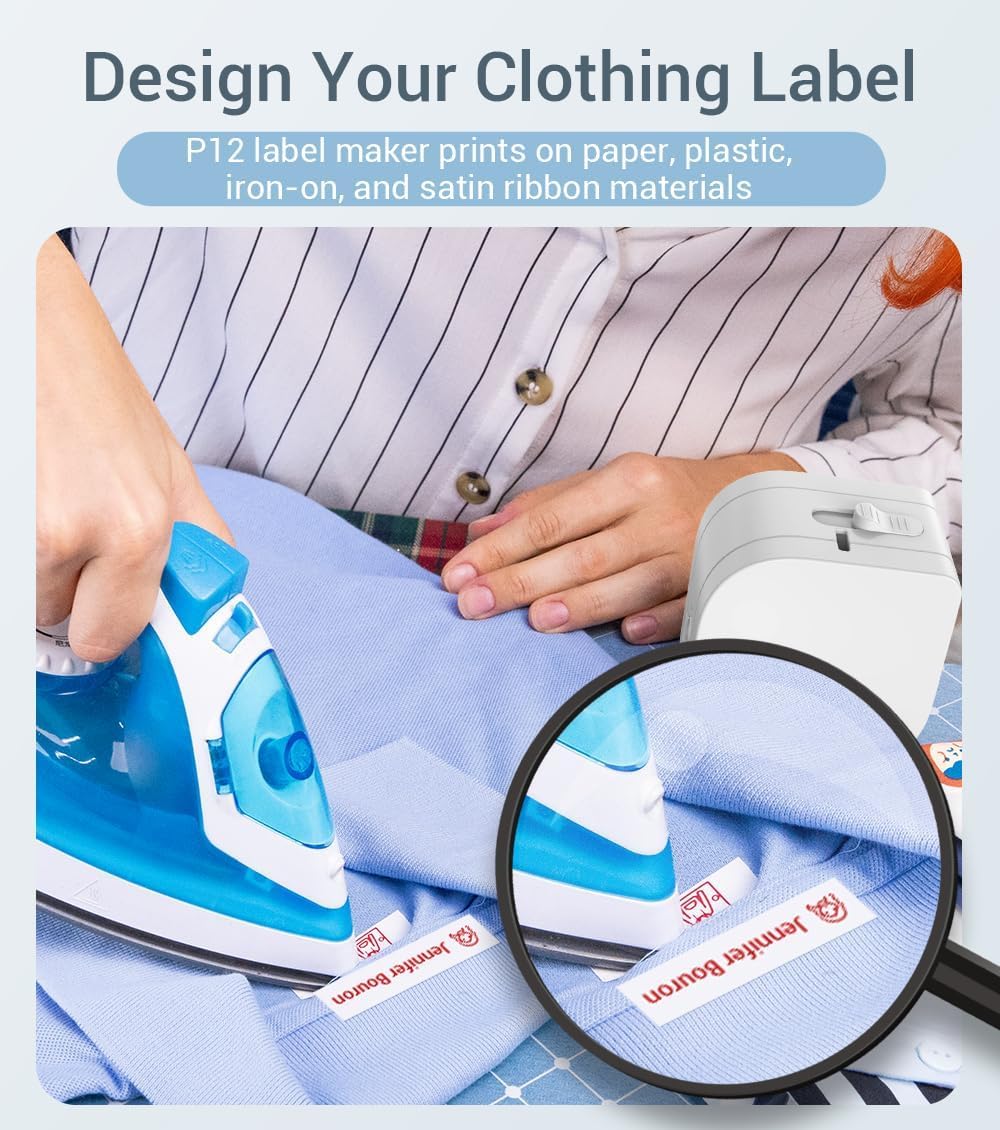 Phomemo P12 ¨¦tiqueteuse Bluetooth, Mini ¨¦tiqueteuse Bluetooth autocollante compatible avec iOS et Android Phone, imprimante d'¨¦tiquettes pour la maison et le bureau, blanc