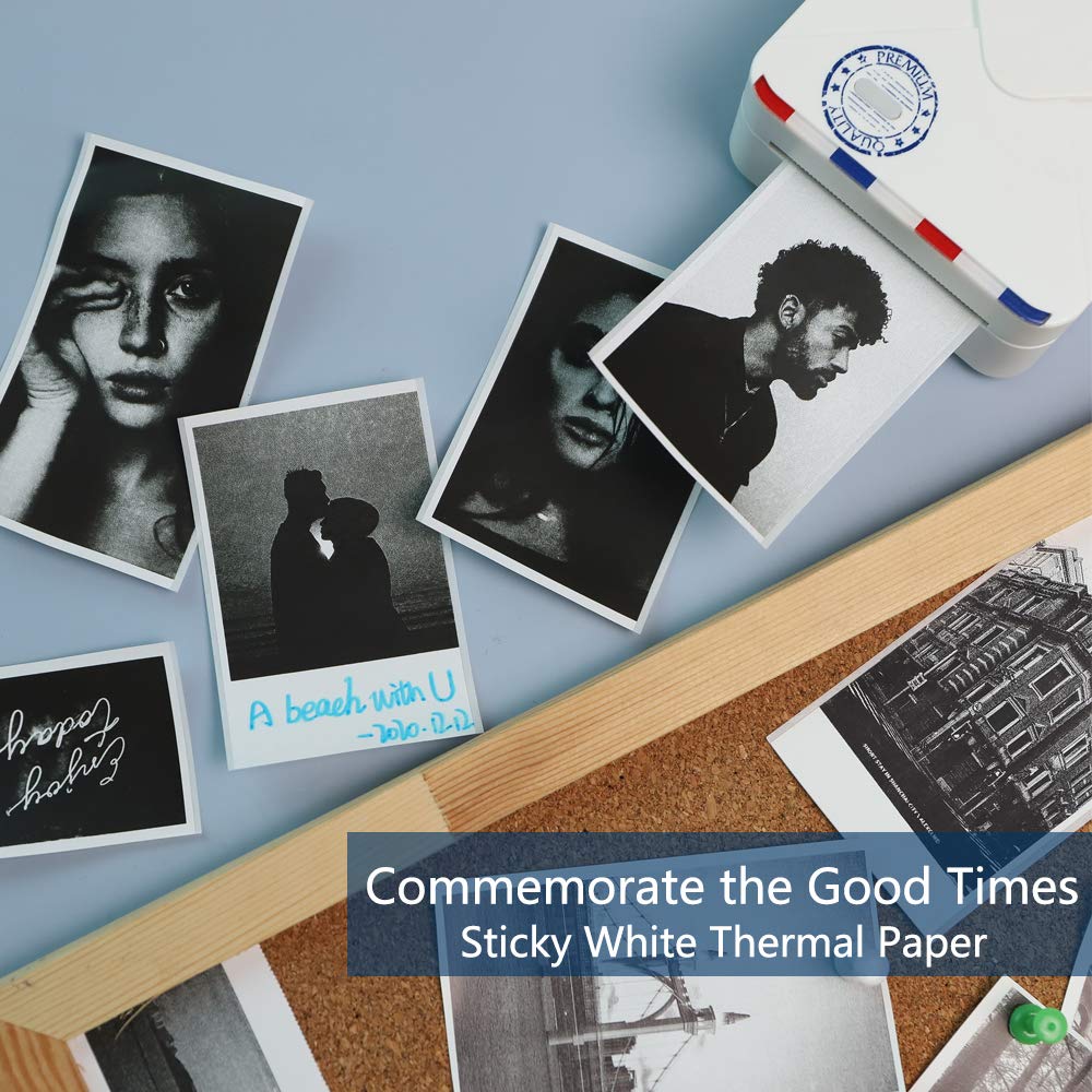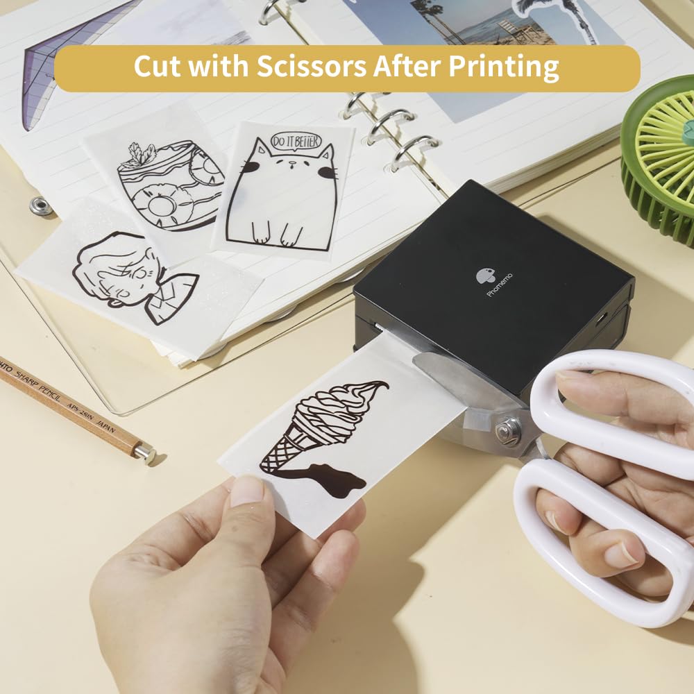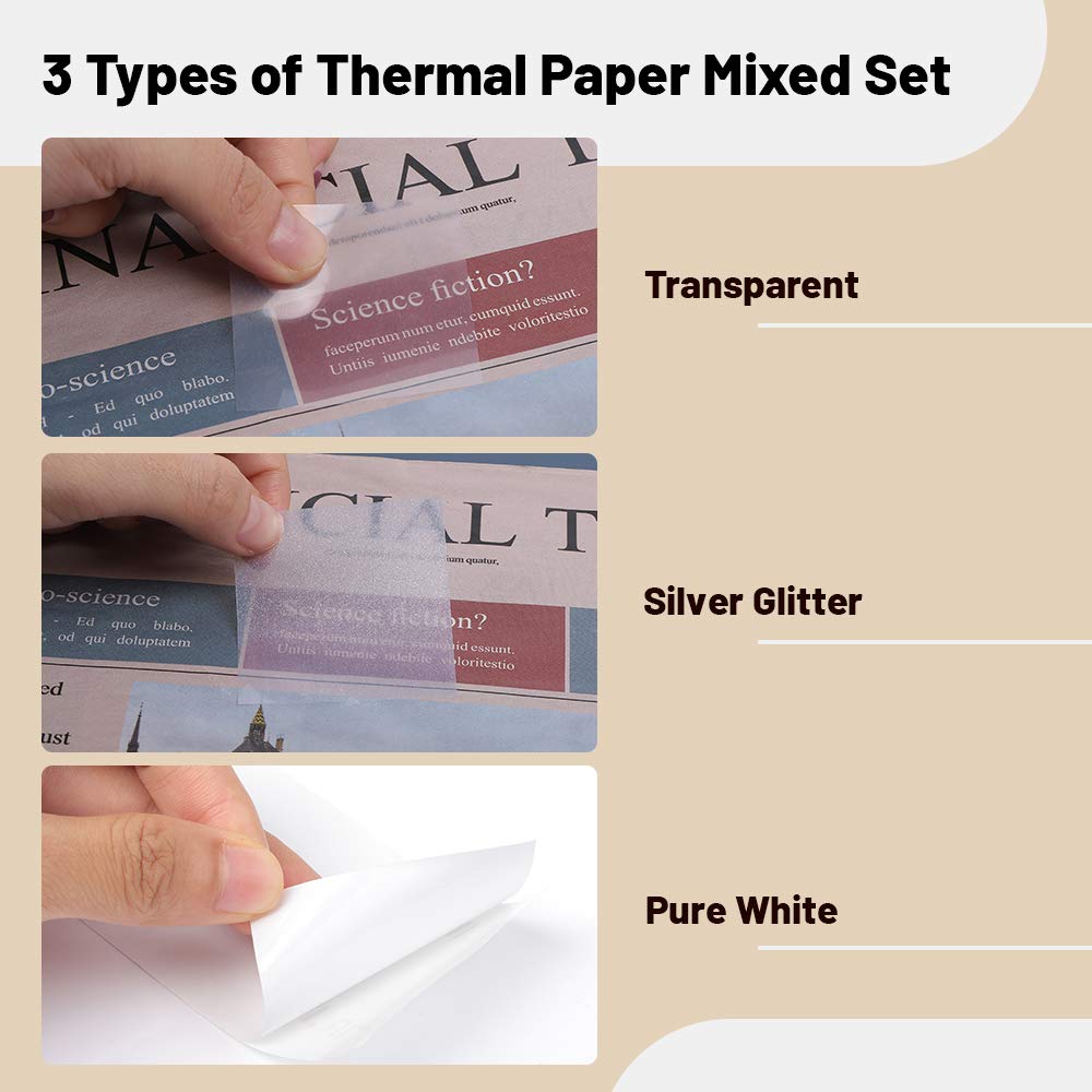 Phomemo Papier ¨C M02/M02Pro/M02S/M03/M03AS/M04S/M04AS ¨C Papier blanc transparent avec papier autocollant 53 mm x 3,5 m