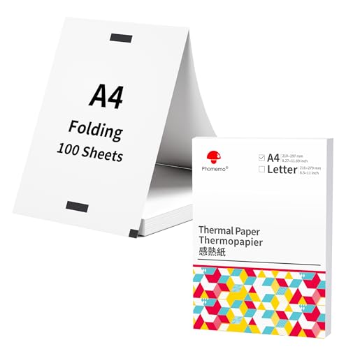 - [Information sur L'emballage] Phomemo A4 papier d'impression thermique à pliage continu, 210x297 mm, 100 feuilles/paquet