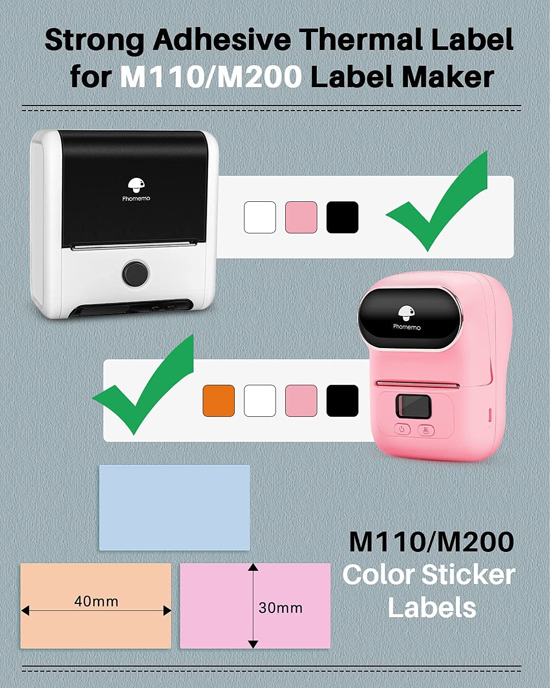 Phomemo Papier do etykiet termicznych - wielofunkcyjna samoprzylepna etykieta, etykieta adresowa, 40 x 30 mm, nadaje się do drukarek etykiet Phomemo M110 M200, 230 etykiet/rolka (khaki)