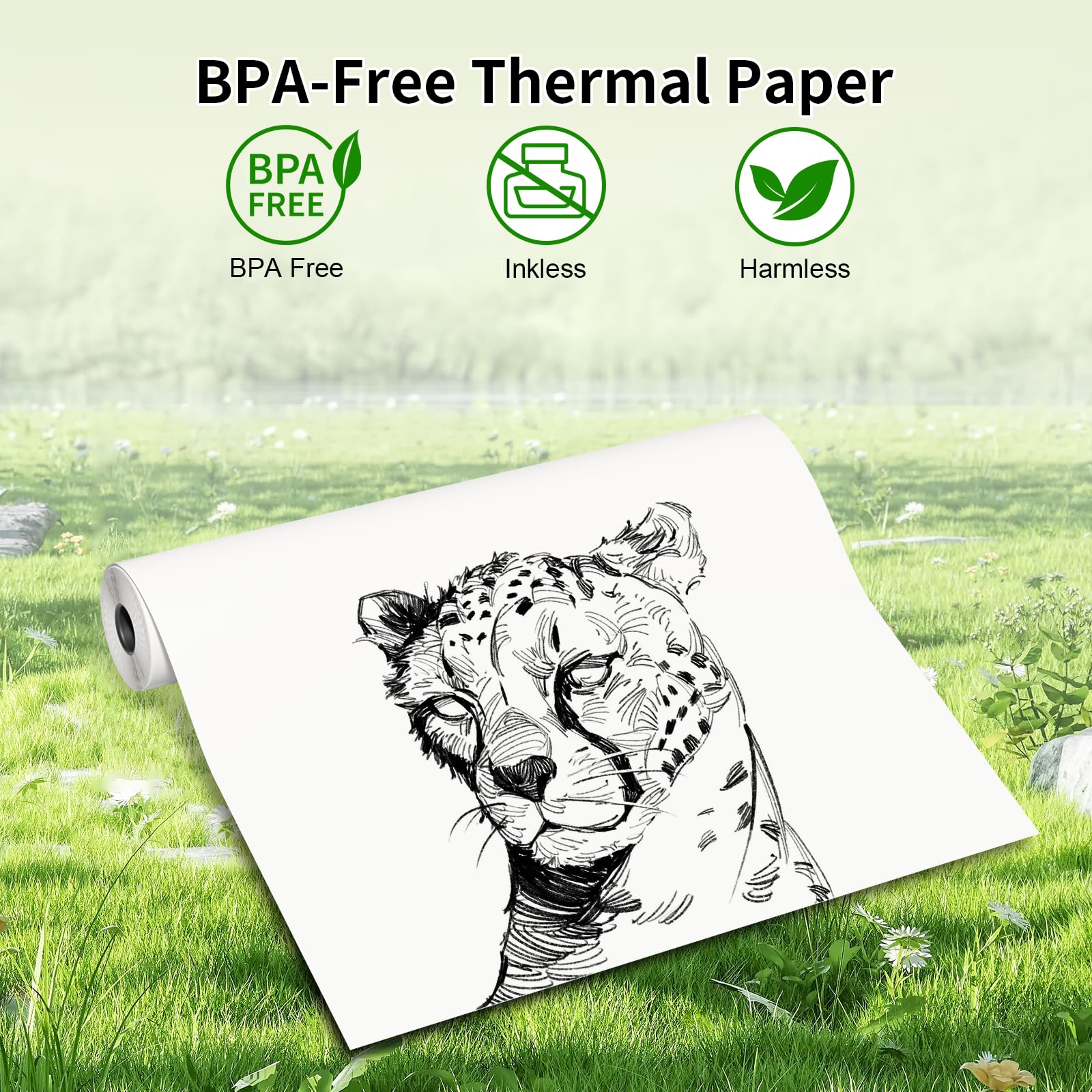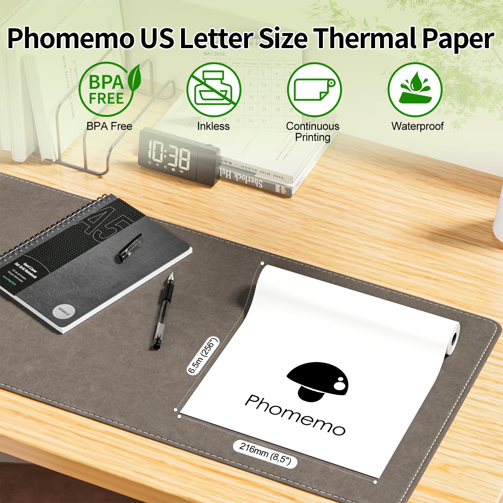 Phomemo Papier pour imprimante thermique, format lettre US, 4 rouleaux, 216 mm x 6,5 m (8,5'' x 256''), compatible avec l'imprimante portable A4 M832/M833/M834, pour voyage, maison, photo, facture