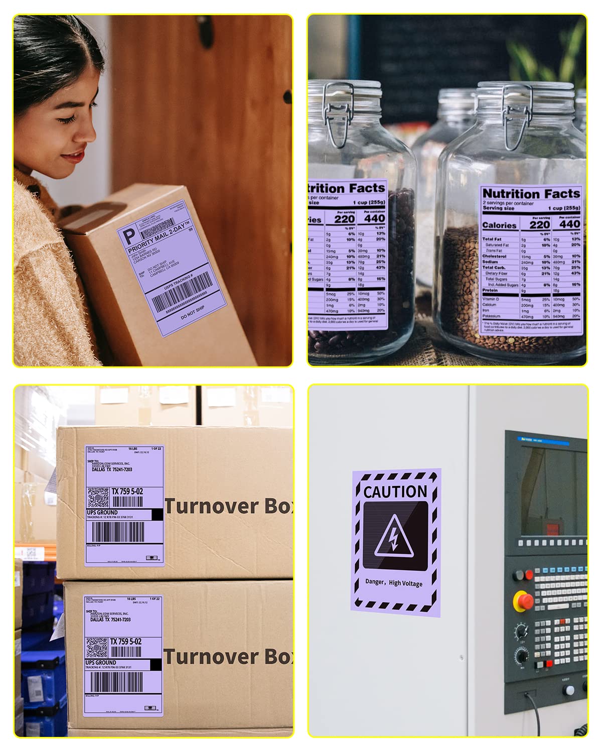 Phomemo Papier termiczny 4 x 6 etykiet do drukarki, termiczne, bezpośrednie połączenie do pakowania, kompatybilne z roletami Dymo Phomemo i innymi drukarkami etykiet 4,6 (opakowanie 500 15 x 15 cm), kolor fioletowy