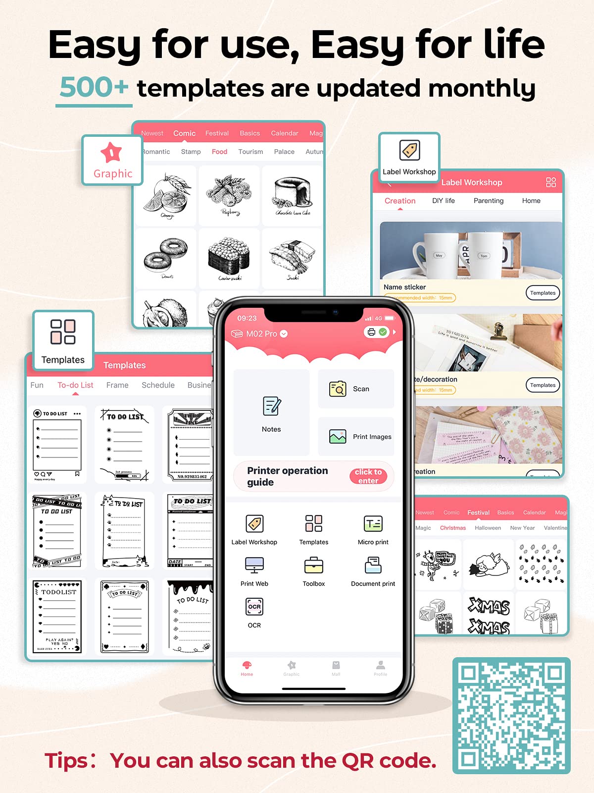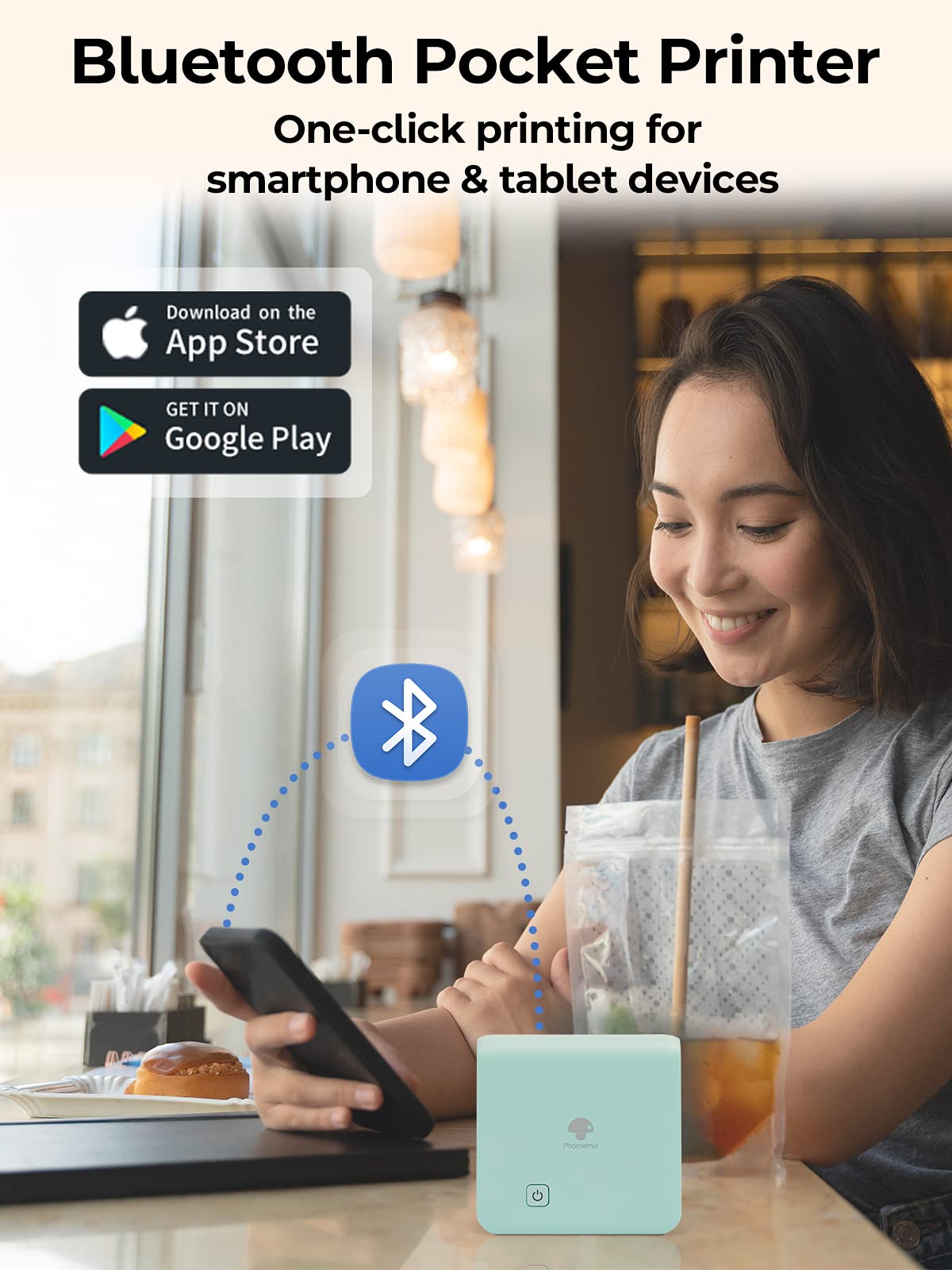 - Product Details and Free Template:The mini printer can print 50mm width, Come with 1 paper roll and 1 paper roll holder, the holder allows your printing process more smoothly. The APP has many functions, printing images, labels, daily plan and study note. You can use the free templates to decorate your dairy.