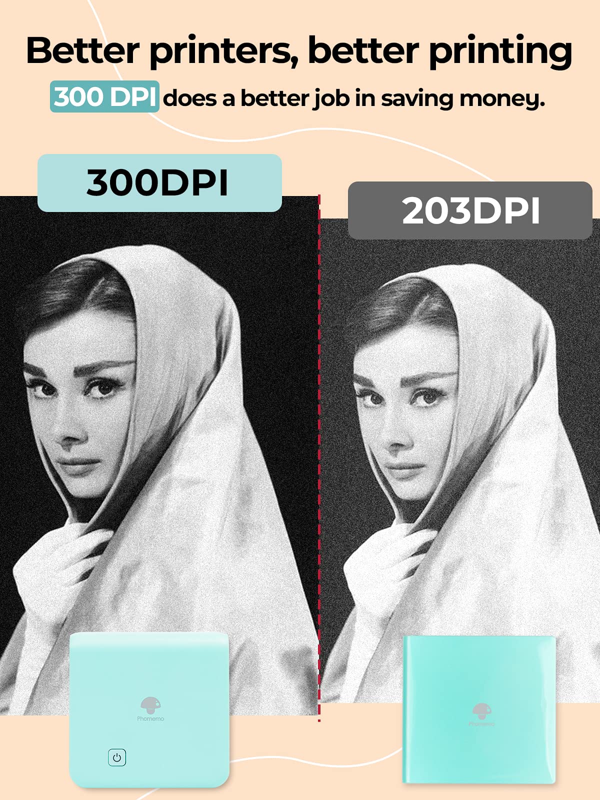 - High Printing Quality :Phomemo M02 Pro Pocket printer use an advanced 5V2A printing head, which makes the images more clear than 5V1A. 300 DPI printing resolution can record your life better.