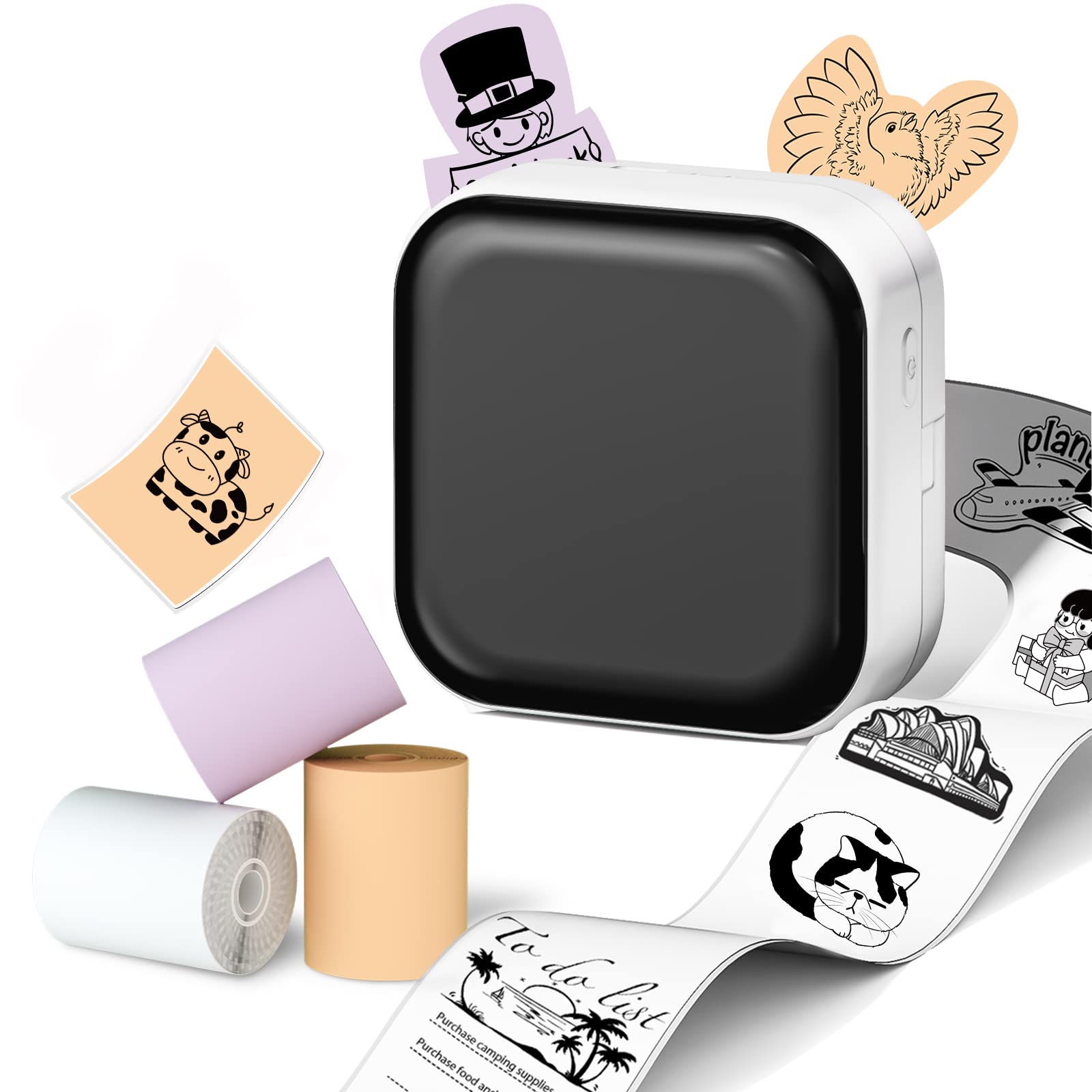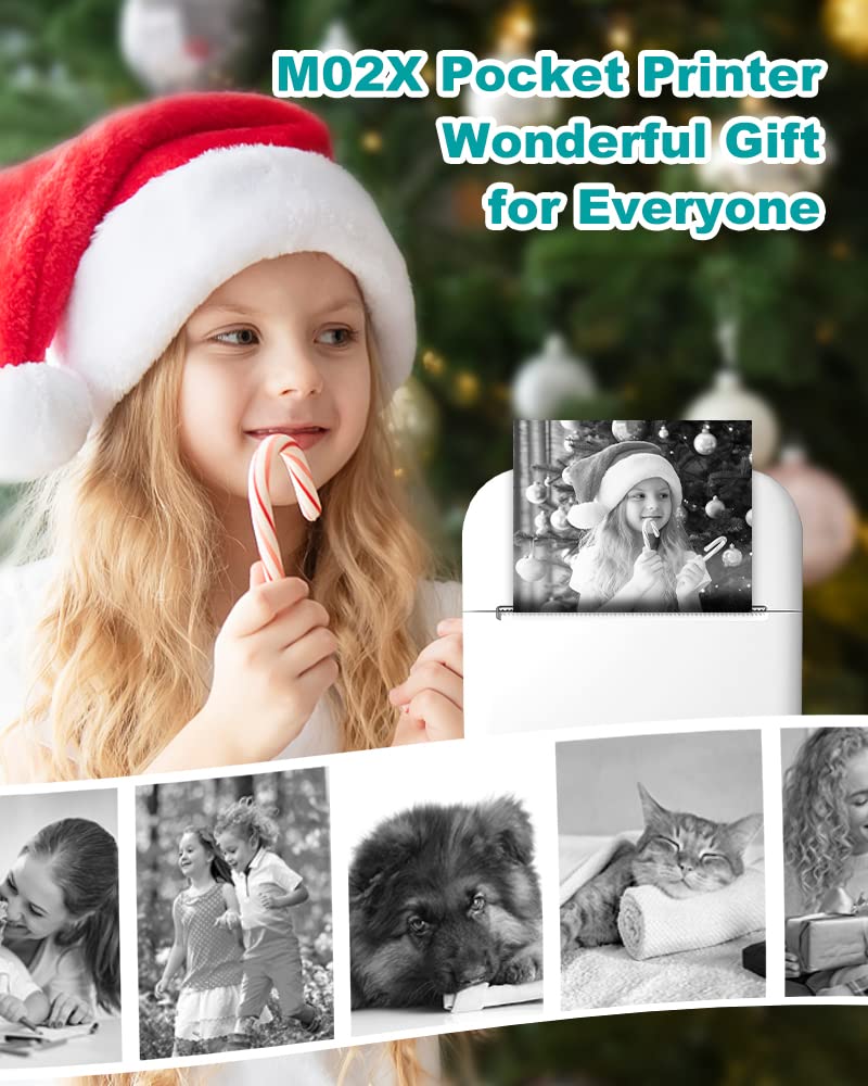 - ¡Ì Specail Gift- M02X mini printer is ideal for Halloween, Thanksgiving day, Christmas and holiday present to child,family and friends.You can use it to print photos,plan journal, do list, print any text or notes. With One roll white sticker paper.
