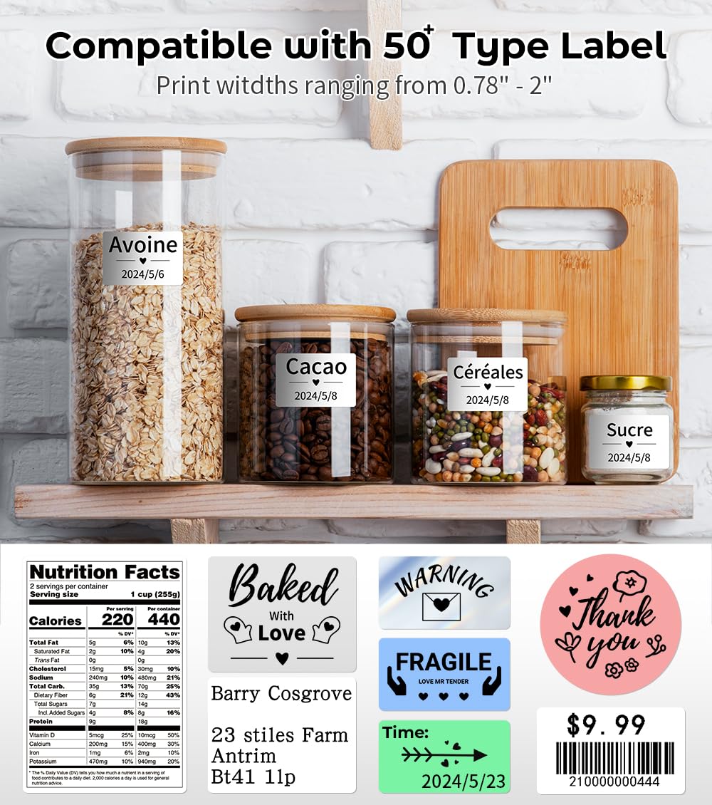 - Easily Label Printing - M110 label printer supports a label width range from 20mm to 50mm, the largest printable width is 48mm. It is widely used in business or household, including ingredient label, barcode label, price label, cable label, address label