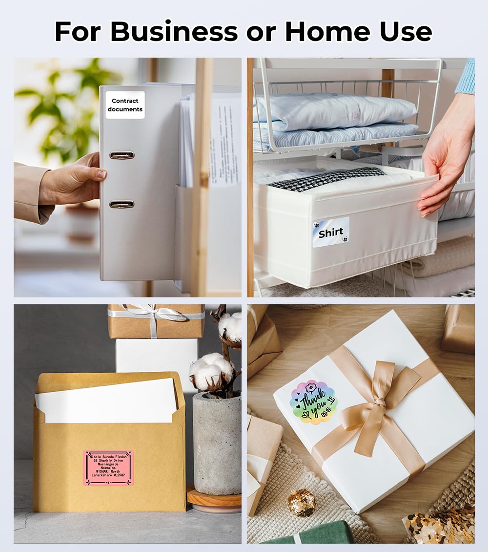 - No Ink or Toner - M110 label maker is a thermal printer, no ink or ribbon (only print black and white label). Mini label maker is equipped with adjustable paper holder and automatic label identification, it is built to prevent paper jams and deviations