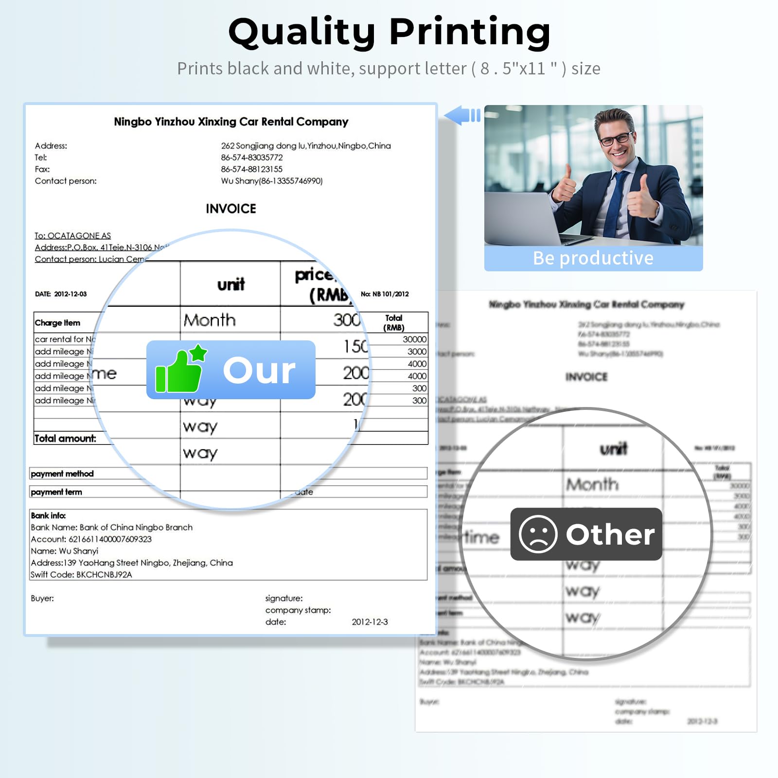 - Inkless Printing - Our inkless printers use advanced thermal technology. Say goodbye to expensive inks, toners or ribbons, eliminating clogging and cleaning problems. By simply replacing the thermal paper at a cost as low as $0.12 per sheet, you can print more economically and sustainably