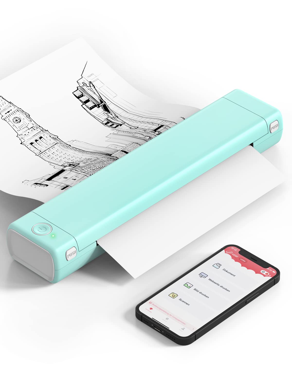 - Small and Compact Design - The small compact printer only 2lb and 1.5in thick,built in 1200mAh rechargeable battery,full charge could print 140 sheet,this mini portable printer fits in your laptop bag,briefcase,your car,backpack,and more,for convenient printing anywhere. Phomemo M08F portable printer is a good helper for prints basic documents like recipes,forms,letters,assignments,study materials,travel documents,contracts,office documents,inventory list,business check,shipping labels,boarding passes,invoice etc.