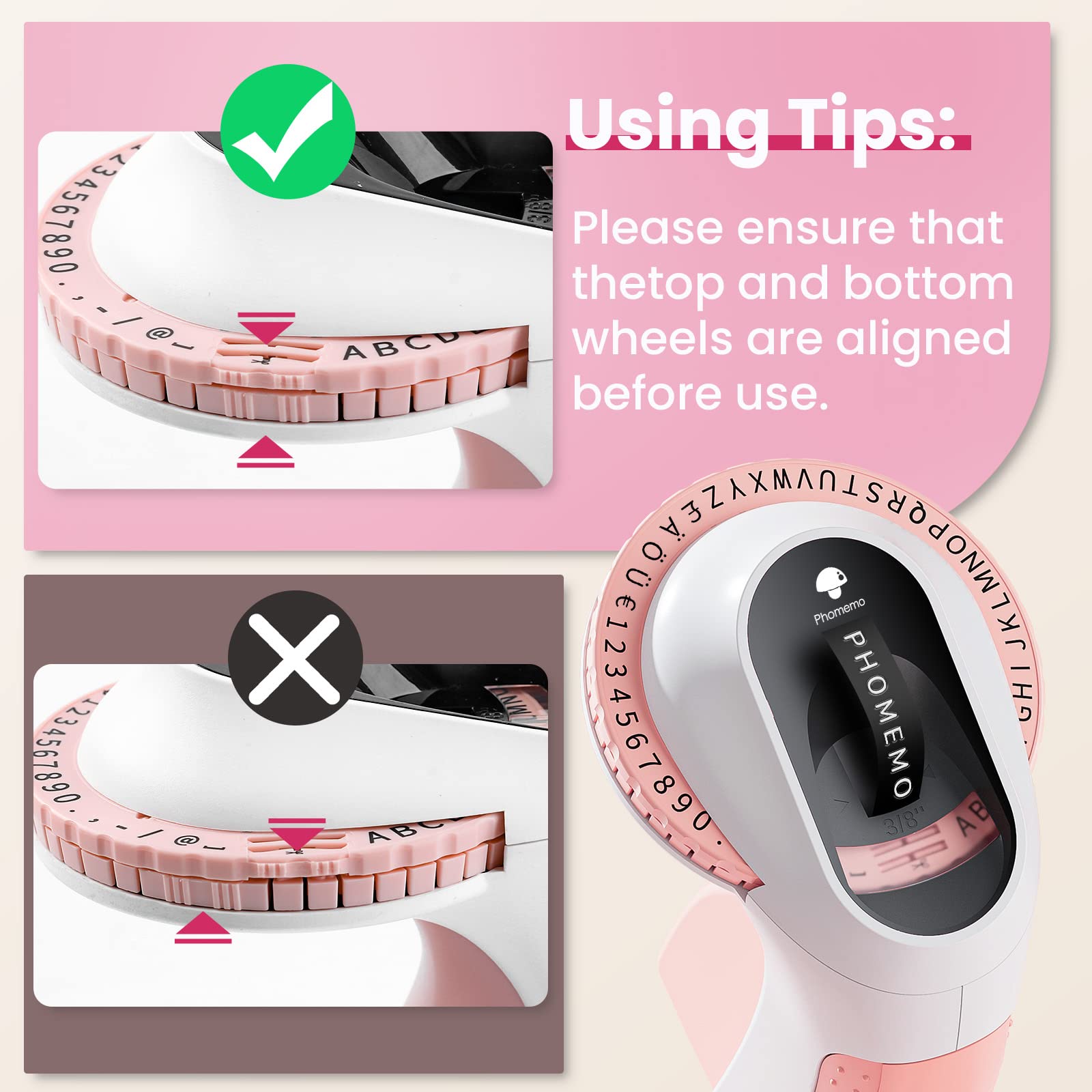 - Phomemo Etikettierger?te: Einfach zu bedienen, keine Notwendigkeit, mit dem Telefon zu verbinden, keine Batterien und keine Tinte erforderlich; Sie m¨¹ssen nur leicht drehen Sie das Rad und dr¨¹cken Sie den Druck manuell (Tipps: Bitte stellen Sie sicher, dass die oberen und unteren R?der vor dem Gebrauch ausgerichtet sind)
