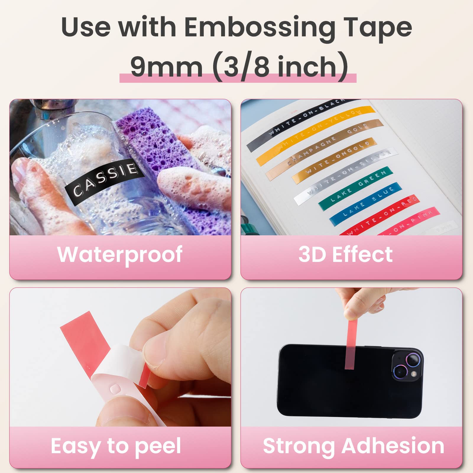 - 3D-Effekt: Kompatibel mit 9mm£¨3/8 Zoll£© Embossing Tape, Sie erhalten einen 3D-Druck-Effekt, die Etiketten sind wasser- und ?lbest?ndig, leicht abziehbar, stark haftend, aber nicht klebend, wenn sie entfernt werden