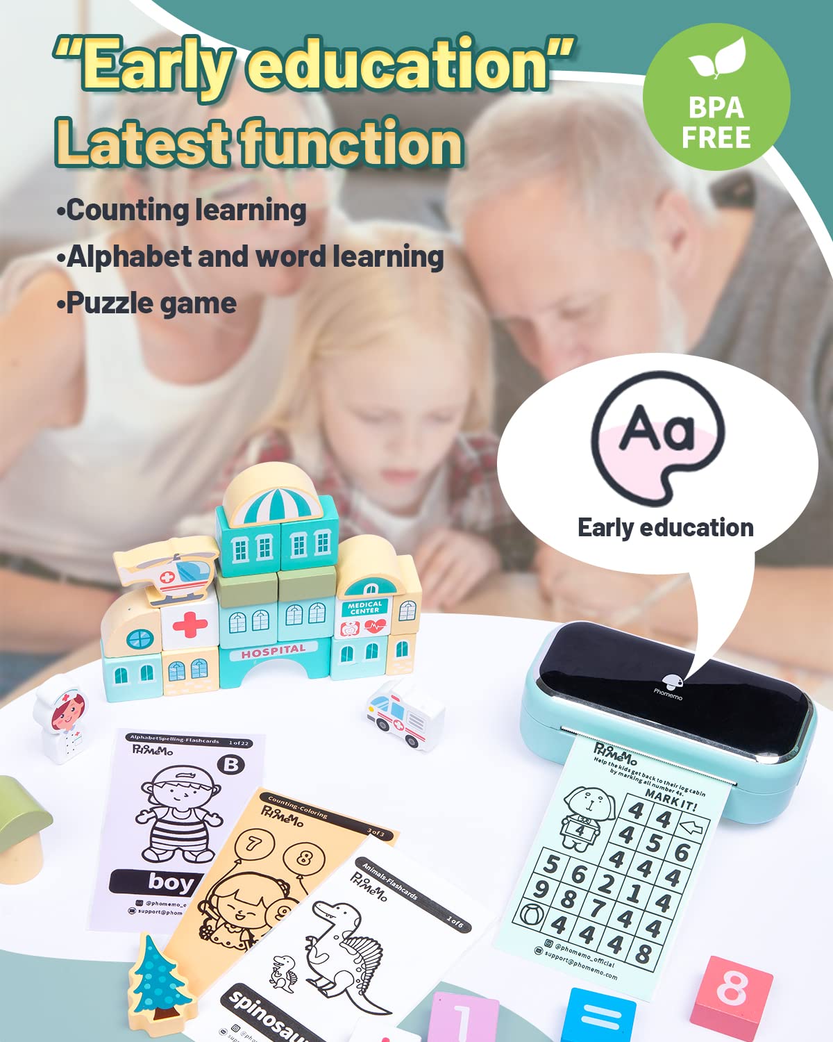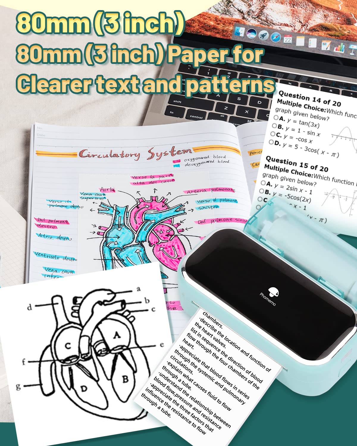 Phomemo Printer, M03 3 inch Portable Phone Printer, Inkless Thermal Printer Bluetooth Sticker Printer for Study, Notes, Images, Journal, DIY, Comaptible with Phone & Tablet, Green