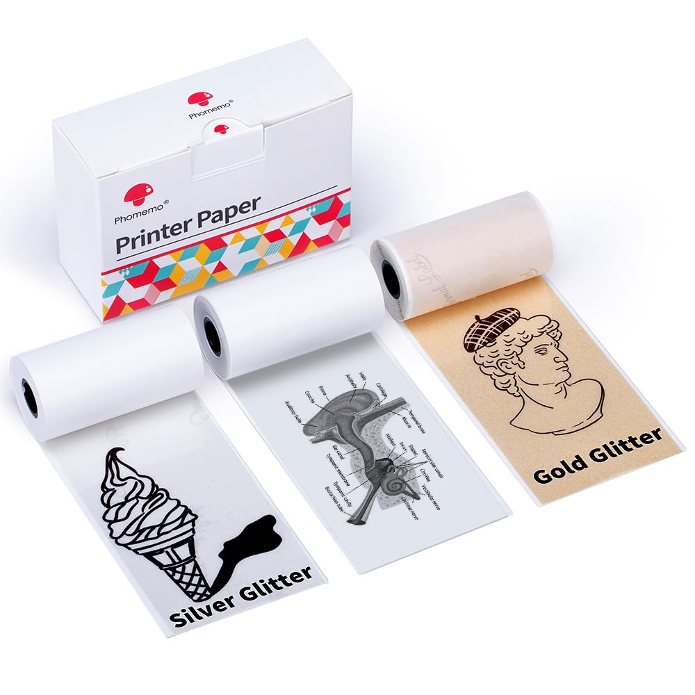 - Compatible with Phomemo M02/M02Pro/M02S/M03/M03AS/M04S ---portable Bluetooth pocket mobile thermal printers. Transparent papers are like scotch tape, silver and golden papers have unique fine glitter under the sunshine or any light.