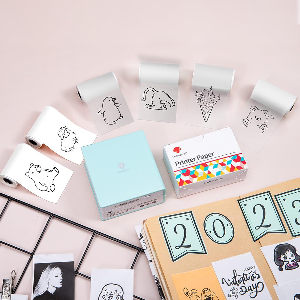 Phomemo Printerpapier, set van 6 stuks, zelfklevend, transparant, wit, semi-transparant, thermisch printerpapier voor Phomemo M02PRO, T02, M02, M02S, M03, M03AS, M04S