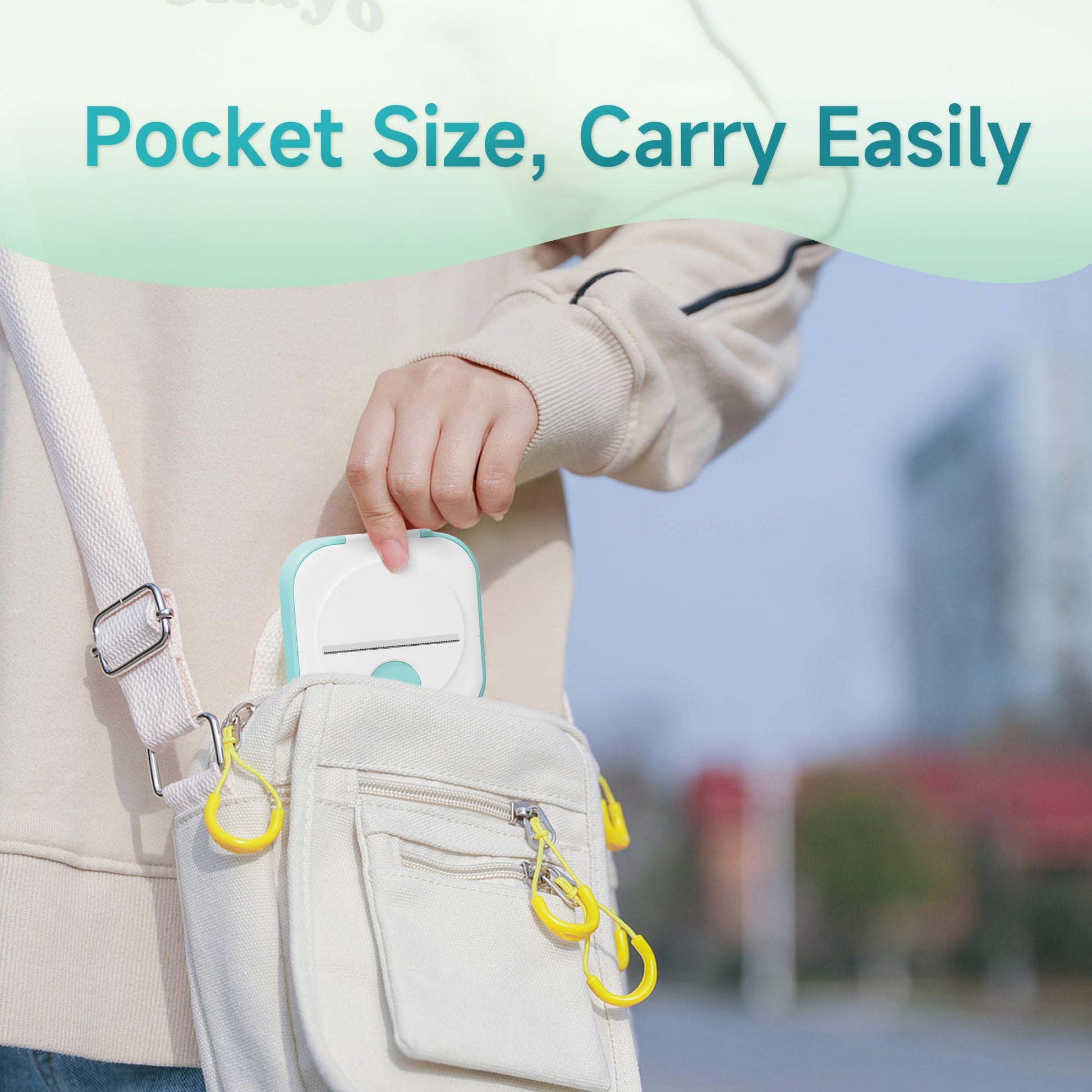 - [Portable Pocket Printer]The Q02 mini sticker maker weighs 150g and is just half the size of a smartphone, easily fits in your pocket and carries with you.This is a great gift for the school season, Halloween, Thanksgiving and Christmas, allowing you to experience the fun and convenience of Q02 thermal printer!