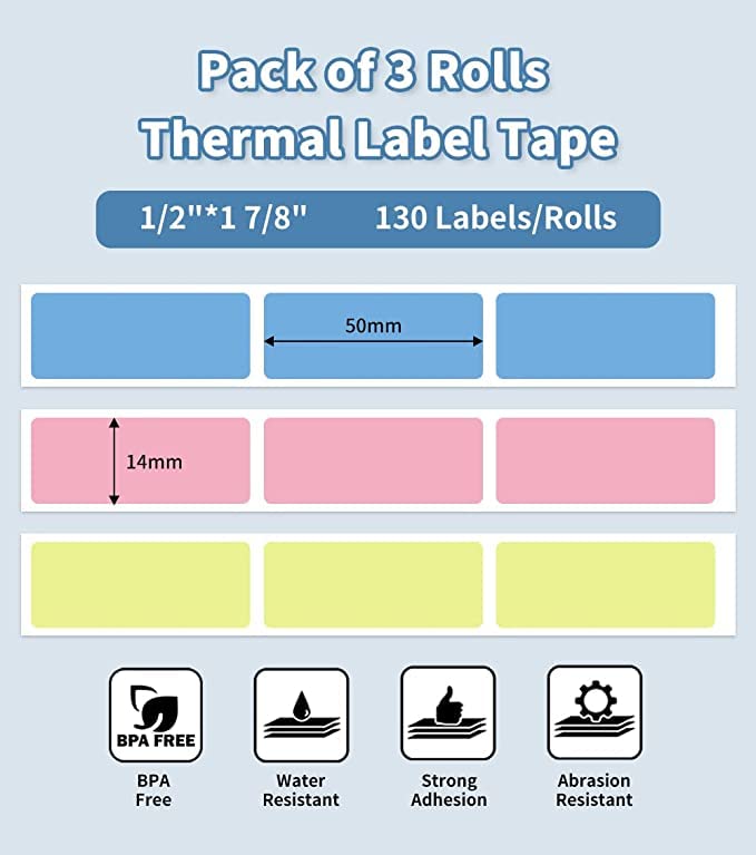 Phomemo Q31/Q30 Etiketten Rosa/Gelb/Blau 14x50mm für Phomemo Q31/Q30S, Kompatibel mit Pokelabel Q30 & Colorwing Q30, Thermo-Etikettenrolle für Q31/Q30/Q30S/Q32 Bluetooth Portable Label Printer