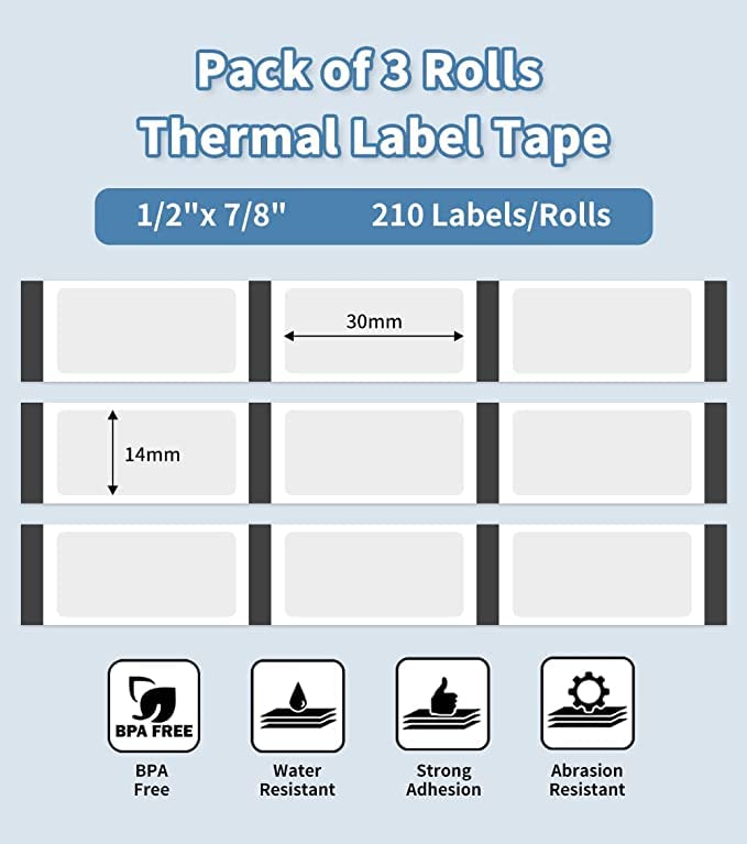 - Praktische Etikettengr??e : Etikettengr??e von 14 x 30 mm, 210 Etiketten in einer Rolle, 3 Rollen pro Box. Ideal f¨¹r Namensschilder, Datumsanzeige, Kategorie-Etiketten, Notizen und vieles mehr.