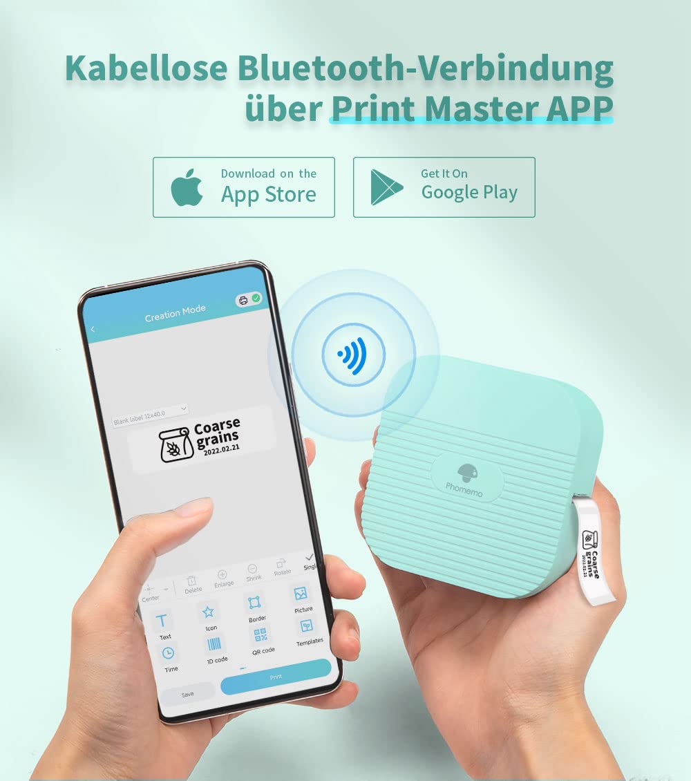 - Mini & Bluetooth: Der Phomemo Q31 Etikettendrucker wiegt nur 98 g (0,21 lb), die kompakte Größe passt in Ihre Handfläche und lässt sich leicht in der Tasche mitnehmen. Verbindung über Bluetooth mit Ihrem iPhone oder Android-Gerät. ACHTUNG: Bitte verbinden Sie den Drucker mit Ihrem Telefon über die Printer Master App