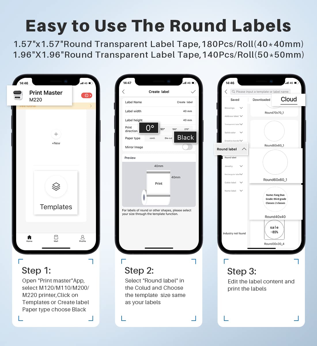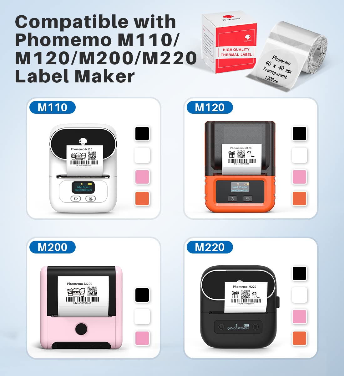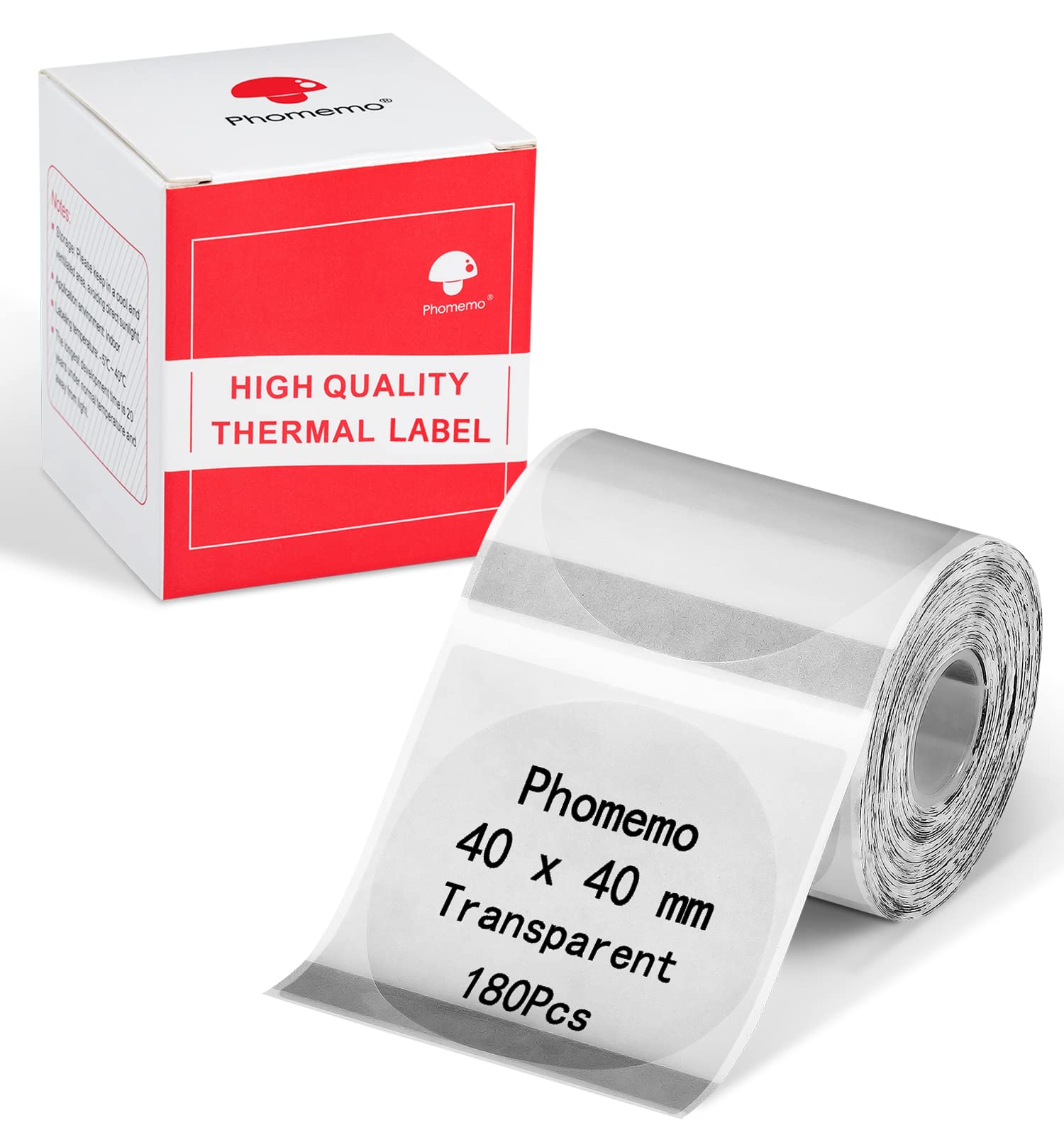 Phomemo Ronde transparante etiketten, 40 x 40 mm, compatibel met Phomemo M110, M120, M200, M220 labelprinter voor verpakkingen, enveloppen, dozen, geschenkverpakkingen, 1 rol