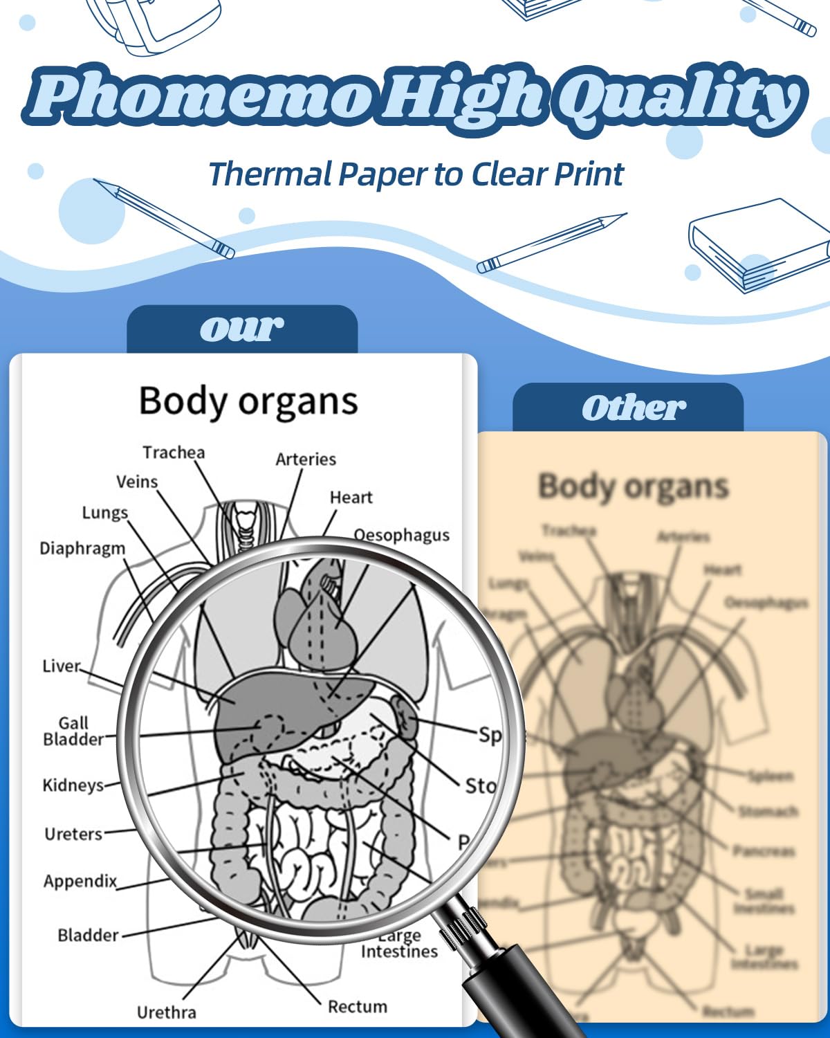- Materiale di alta qualità: Senza BPA/BPS, la carta termica Phomemo è robusta e durevole, liscia e piatta, senza asperità.