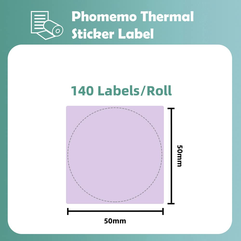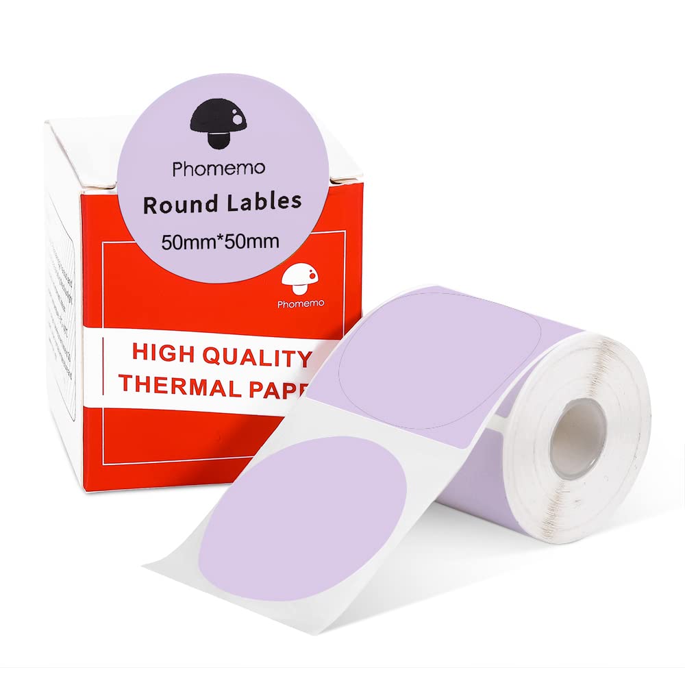 Phomemo Round Circle Label Label Machine M110 M120 M200 M220 M221 Thermal Printer Labels for Price Name Address Logo Barcode 50x50mm Purple (1 Roll)