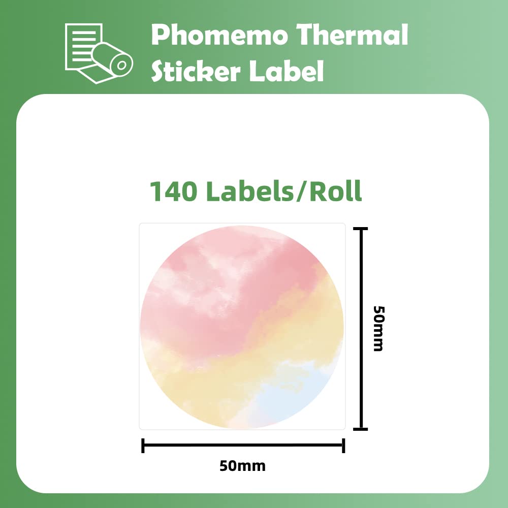 Phomemo Round Circle Label Thermal Labels for Price Name Address Logo Barcode M110 M120 M200 M220 50x50mm Multicolor Gradient (1 Roll)