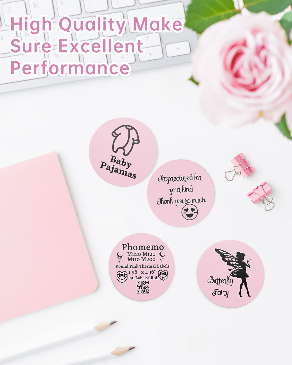 Phomemo Round Labels,1.96'' x 1.96'' Circle Thermal Sticker Labels for Phomemo M220 M110 M221 M120 M200 Label Maker,3 Rolls Multi-Purpose Labels for Thank You Sticker,Barcode,Home,Office Supplies