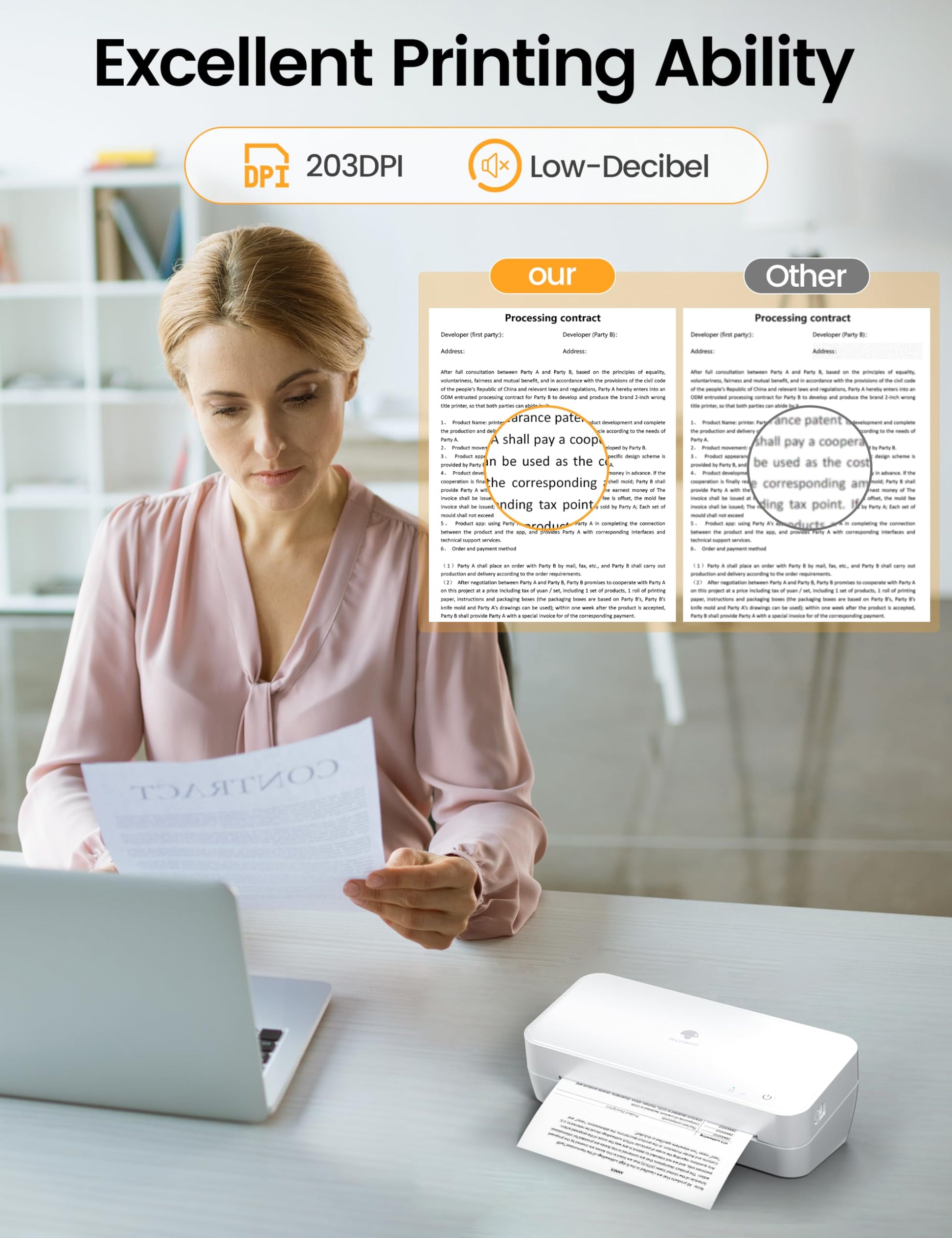 - [High-Quality Inkless Printing]Utilizing thermal technology, there is no need for ink, toner, or ribbons, eliminating issues such as clogging and cleaning. The Phomemo S821 Thermal Printer delivers exceptional print clarity, producing smooth and crisp dark images, while ensuring fast processing. You can easily print files in formats such as Word/PDF/PNG/JPG (limited to black and white printing).