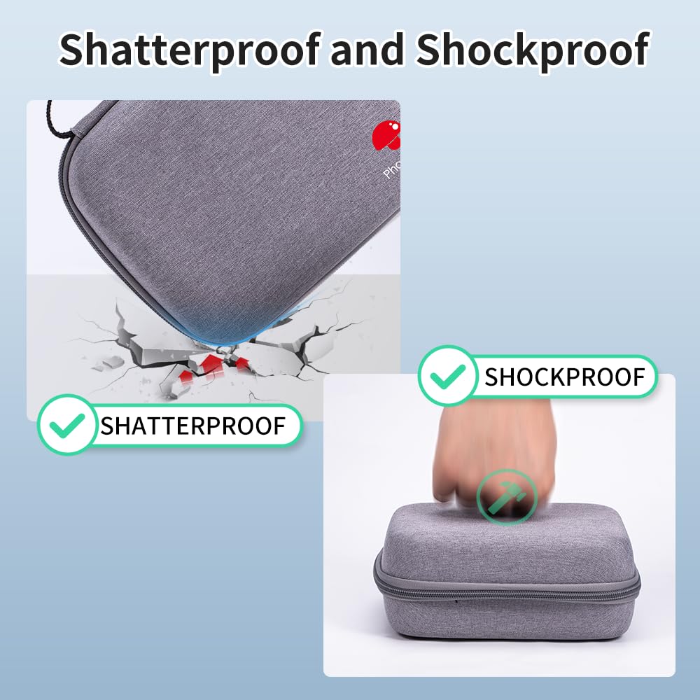 - Matériau EVA de qualité supérieure - Utilise un matériau EVA dur, étanche, résistant aux chocs et aux chutes. Empêche la machine d'être endommagée et prolonge la durée de vie des étiqueteuses et des étiquettes Phomemo.