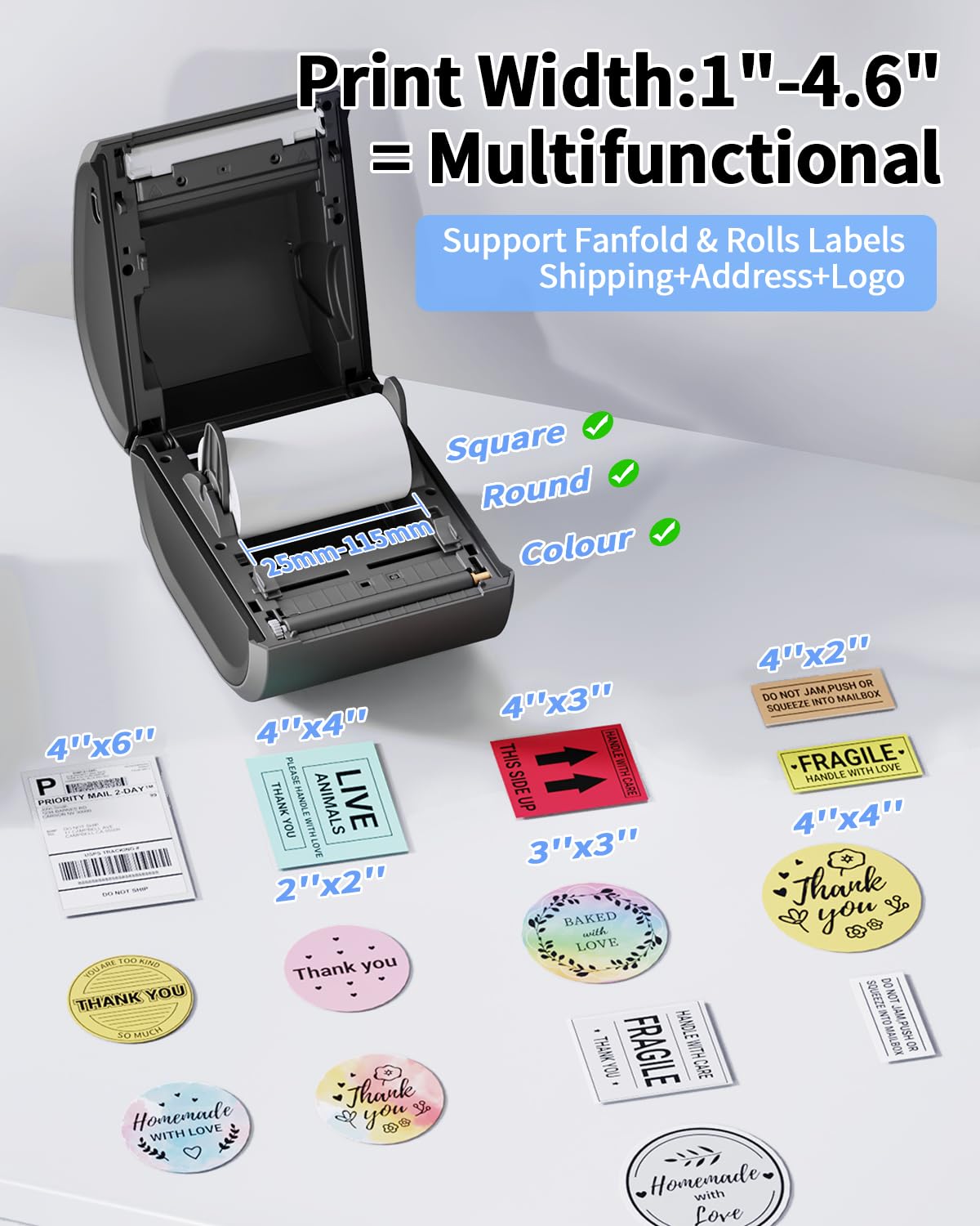 - Compatibilità con diverse piattaforme: La stampante etichette di spedizione Phomemo 203DPI ti offre etichette di spedizione chiare; l'alta velocità di stampa di 120 pezzi al minuto può migliorare notevolmente la tua efficienza lavorativa. Supporta larghezze di etichette comprese tra 1 e 4,6 pollici, sia etichette a ventaglio che etichette a rotolo. Ampiamente utilizzata per stampare etichette dalle principali piattaforme di vendita e spedizione,come Amazon, eBay, Shopify, USPS, UPS, Esty,ecc